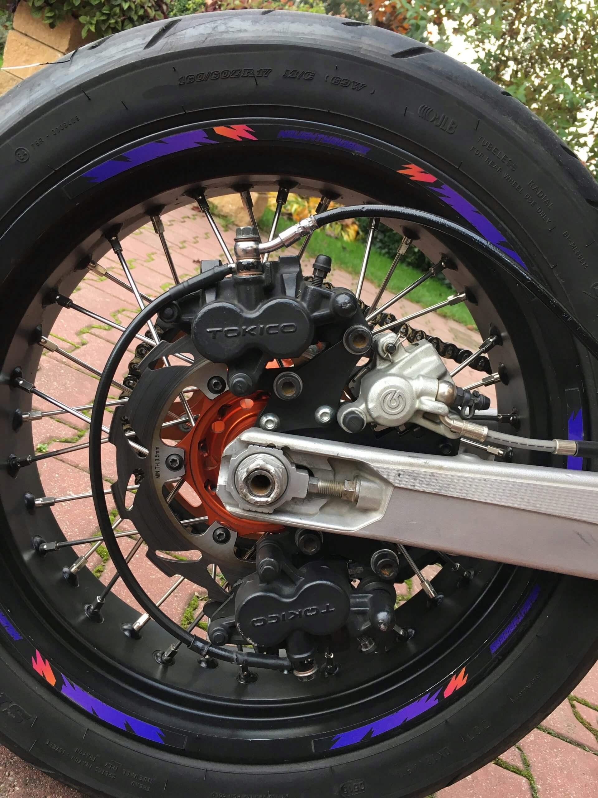 В верхнем положении установлен правый передний двухпоршневой зажим, например, от Suzuki SV 650 (1999-2008).