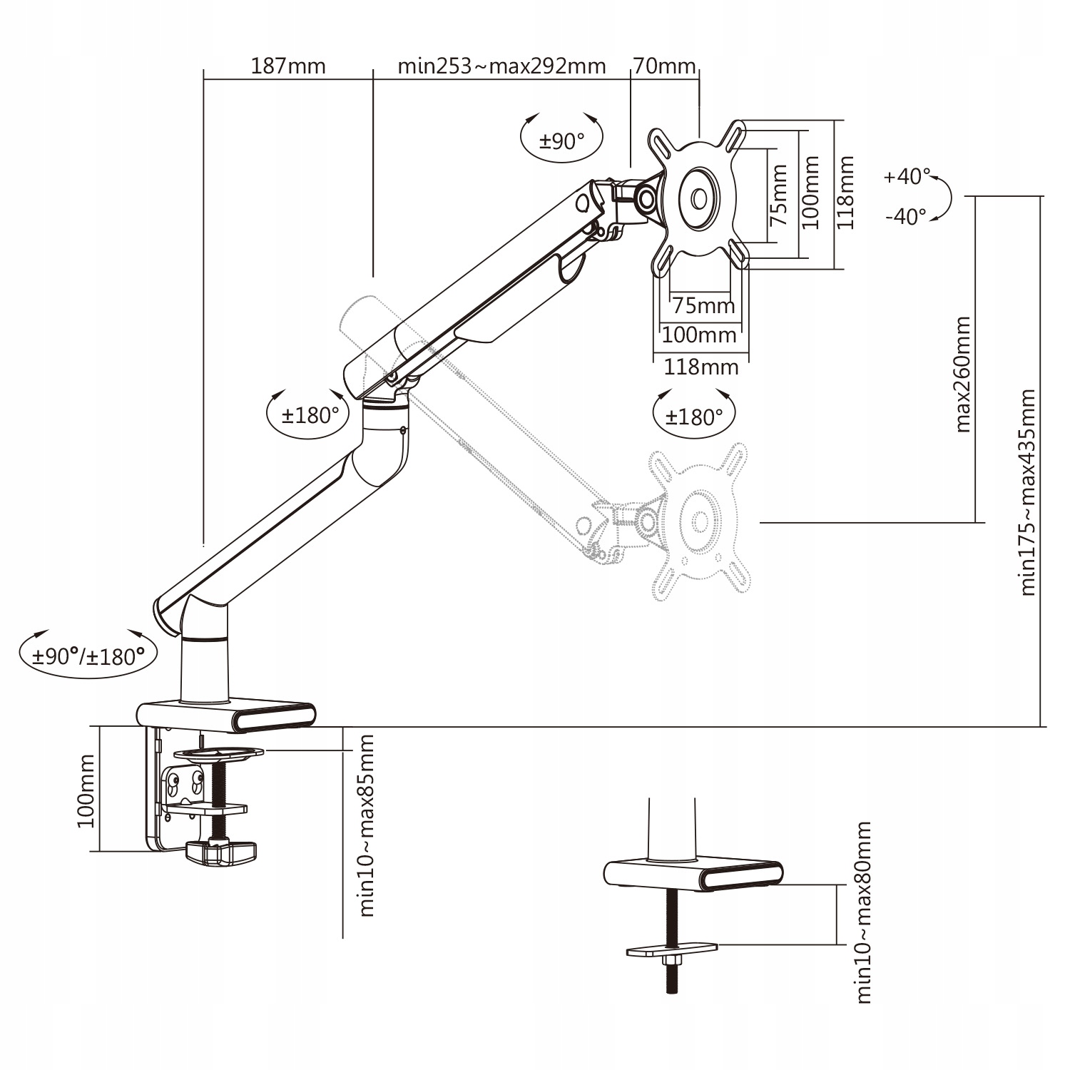 Рука изготовлена из высококачественных материалов – и оснащена прочным крепежным зажимом, позволяющим крепление к столешнице или другим плоским поверхностям. Идеально подходит для использования, среди прочего: в офисе и дома - без сверления отверстий в столах или стенах.