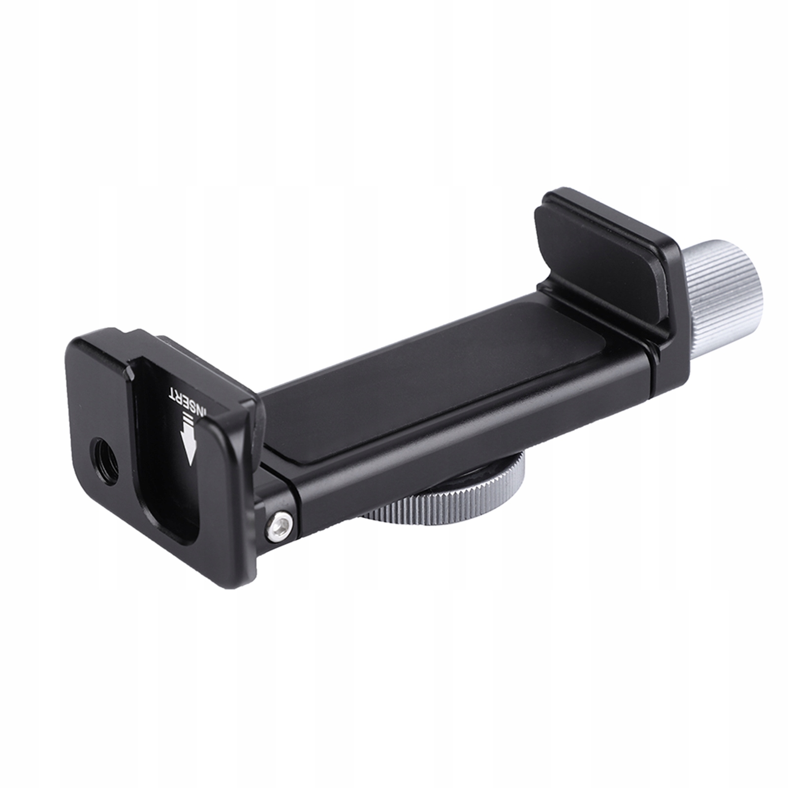 3 Стандартный винт с резьбой 1/4 дюйма и конструкция «холодного башмака» делают его практичным многофункциональным адаптером для установки на штатив мобильного телефона.