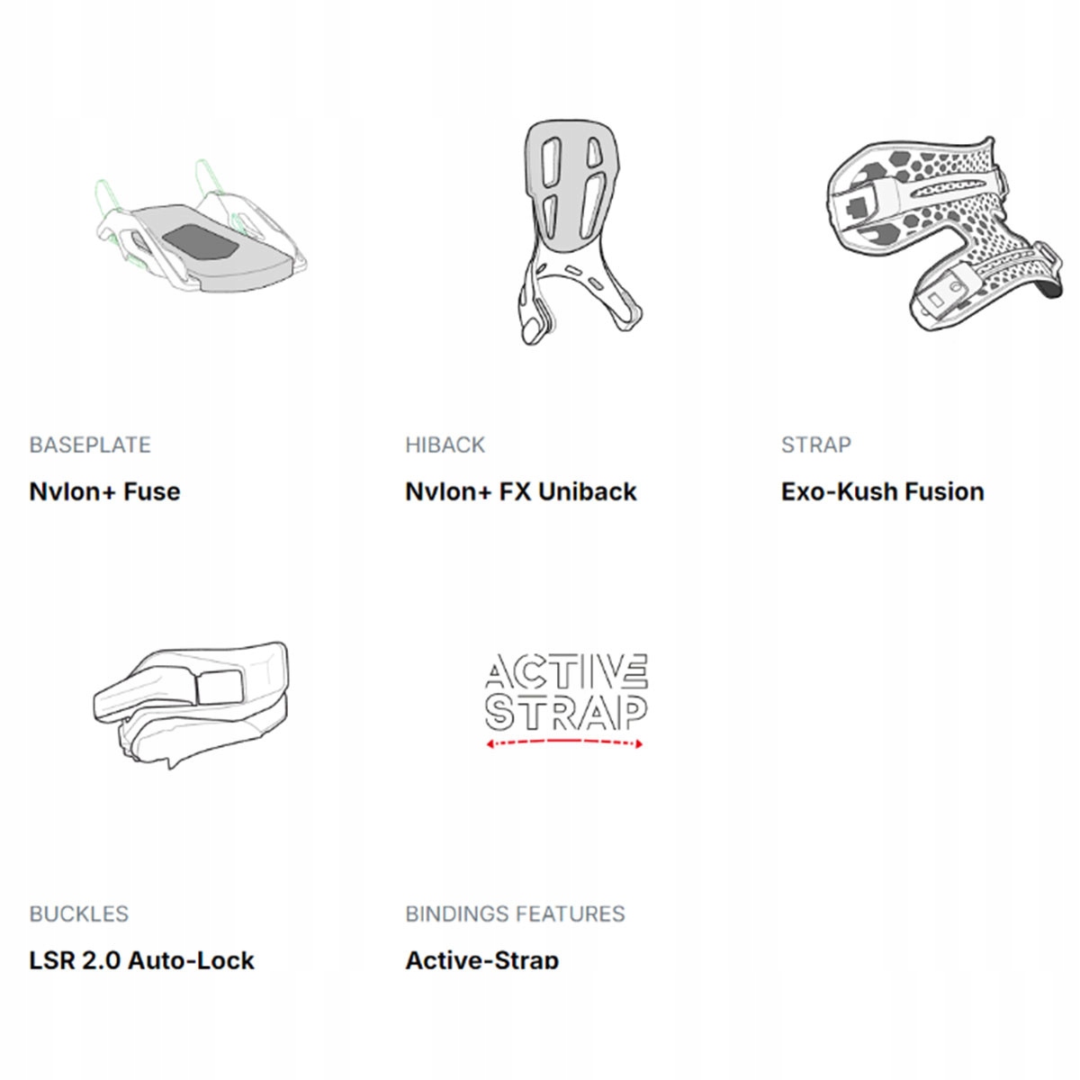 Высокая спинка FX Uniback, оснащенная открывающимся верхним сегментом, обеспечивает быстрое и удобное надевание креплений. Нейлоновая конструкция спинки разделена на нижнюю и верхнюю зоны, что обеспечивает целенаправленную поддержку и эффективную передачу мощности. Комфорт езды в течение всего дня обеспечивается двойным ремнем Exo-Kush, созданным на основе усовершенствованной системы пены EVA. Этот ремень в сочетании с наклонной полноразмерной пластиной BankBed прекрасно поглощает удары и неровности на трассе. Сноубордическое крепление Nidecker Flow Fuse легко застегивается как с помощью откидной спинки, так и с помощью традиционных ремней.