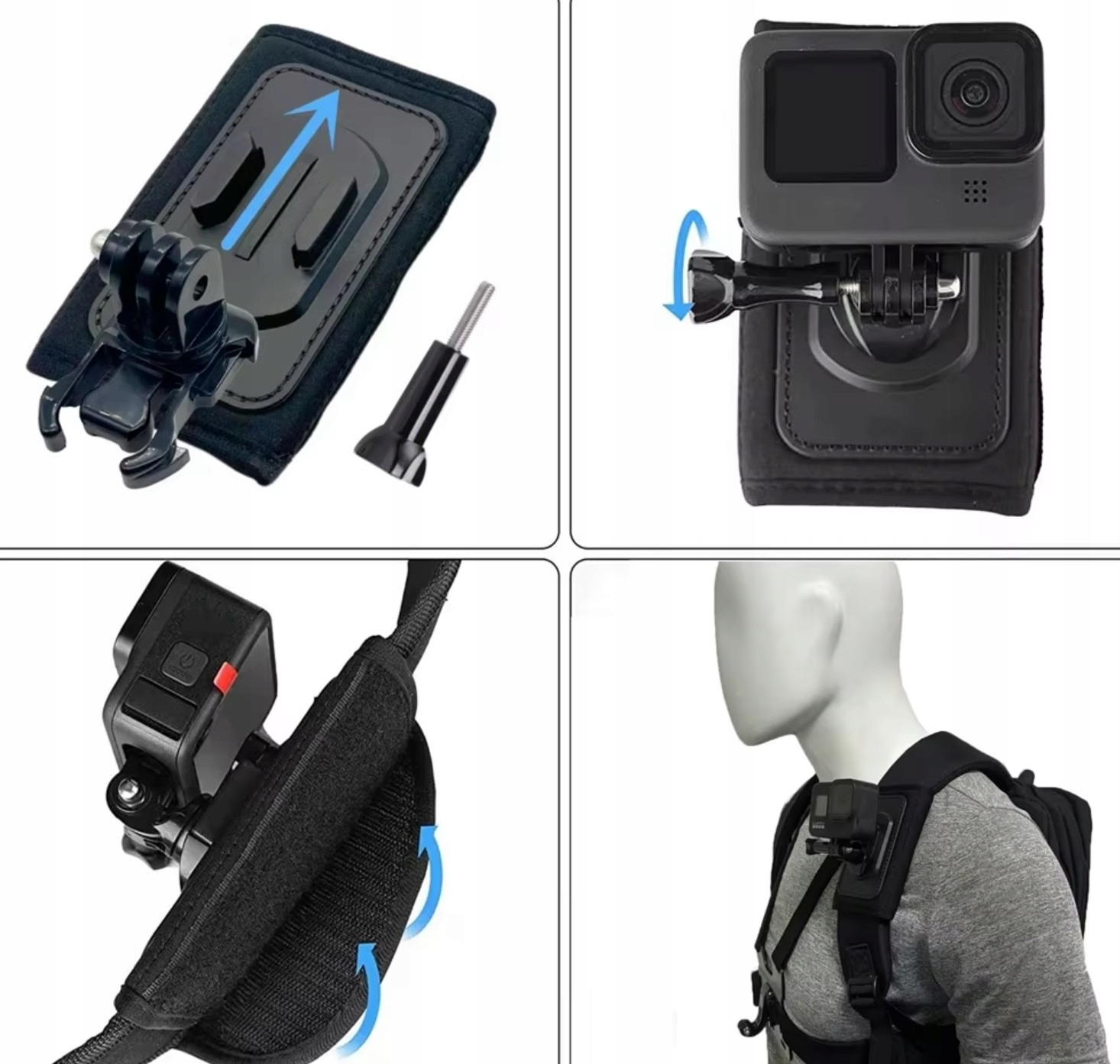 КРЕПЛЕНИЕ ДЛЯ РЮКЗАКА с вращающимся держателем спортивной камеры и адаптером для крепления с резьбой 1/4 дюйма