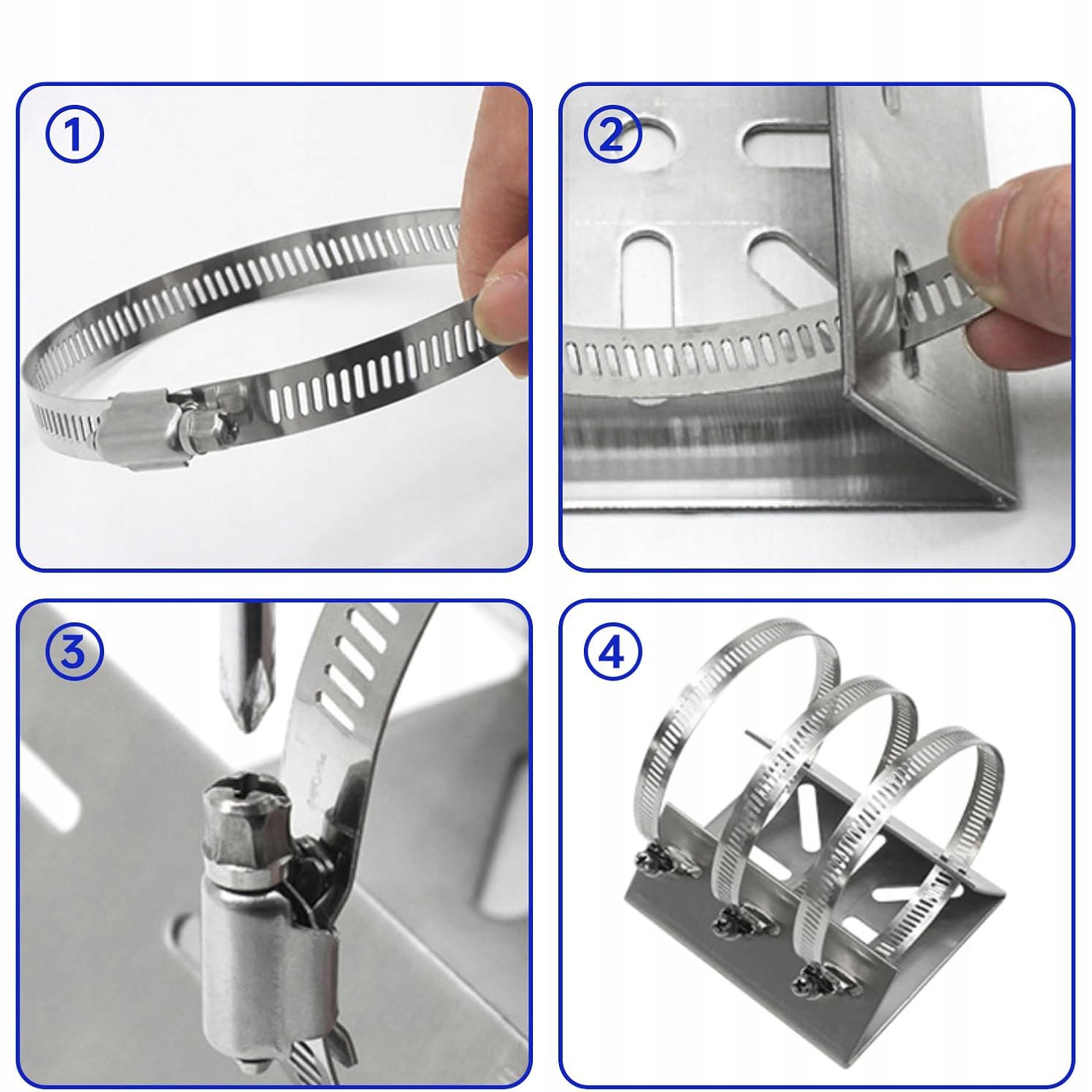 В комплект поставки входят 3 регулируемых кольца, каждое регулируемое кольцо имеет ширину 12 мм, а диапазон регулировки составляет около 25-200 мм. Это означает, что в него легко помещаются столбы, столбы или трубы различного диаметра.