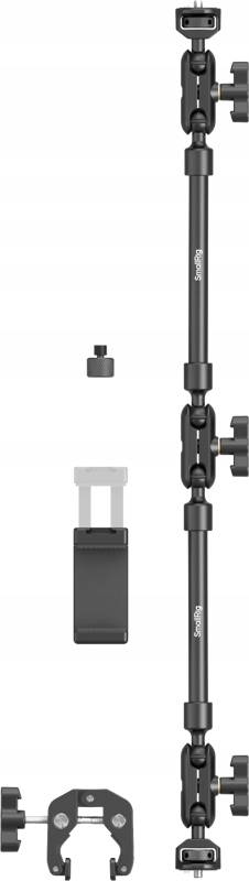 Предлагает универсальное решение для видеосъемки для пользователей, работающих с легкими устройствами, такими как смартфоны, веб-камеры и экшн-камеры. В комплект входит регулируемая волшебная рука длиной 56 см, зажим-краб, держатель для телефона и переходник с резьбой от 1/4"-20 до 3/8"-16.