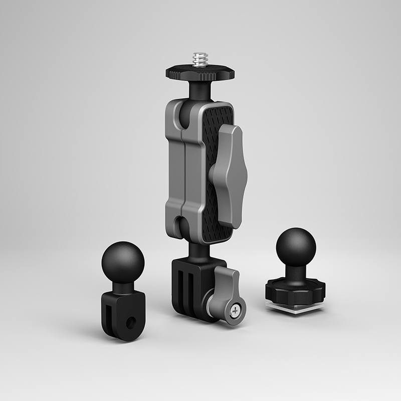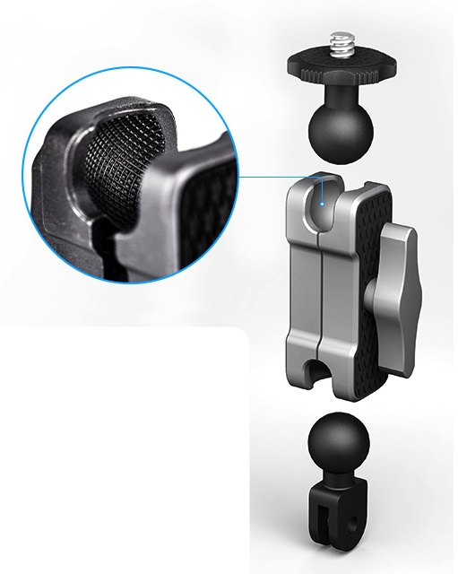 Конструкция аксессуара с двумя шаровыми головками позволяет свободно вращать и наклонять установленный аксессуар в пределах 360 градусов.