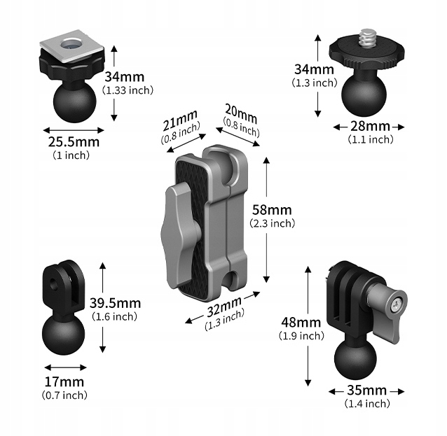Дизайн посвящен камерам GoPro, DJI, обзорным ЖК-мониторам, микрофонам, светодиодным лампам, установленным на камерах, видеокамерах, подвесах, штативах и других устройствах.