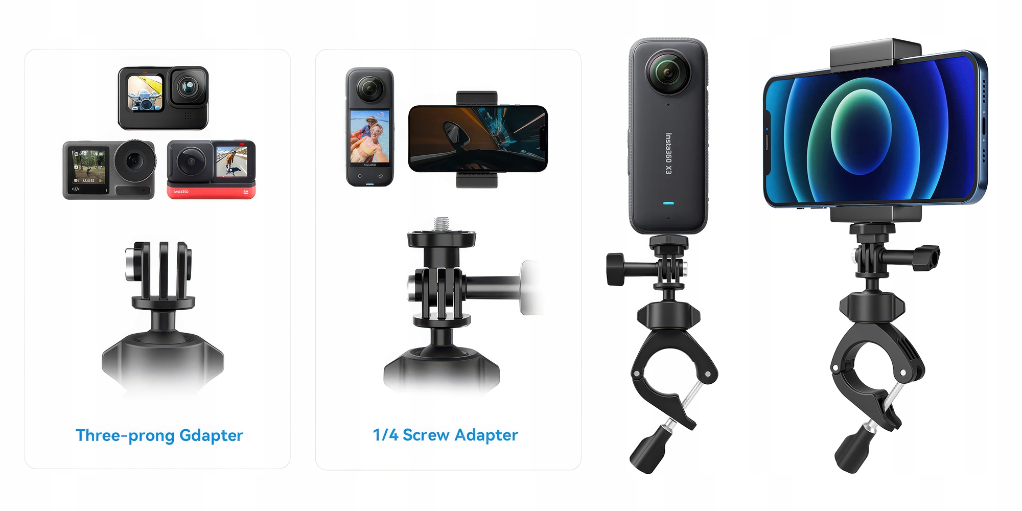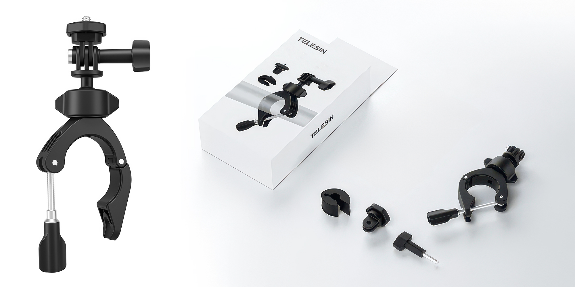 Telesin TE-HBM-004 — это прочное крепление на трубу, которое благодаря двум стандартам крепления — трехконтактному разъему GoPro и винту 1/4 дюйма — подходит для большинства спортивных камер, камер и держателей смартфонов. Это идеальное решение для людей, которые используют разные устройства и нуждаются в одном универсальном креплении. Вы устанавливаете его один раз — и получаете возможность вести запись от первого лица, во время путешествия, на велосипеде или мотоцикле, независимо от используемого оборудования.