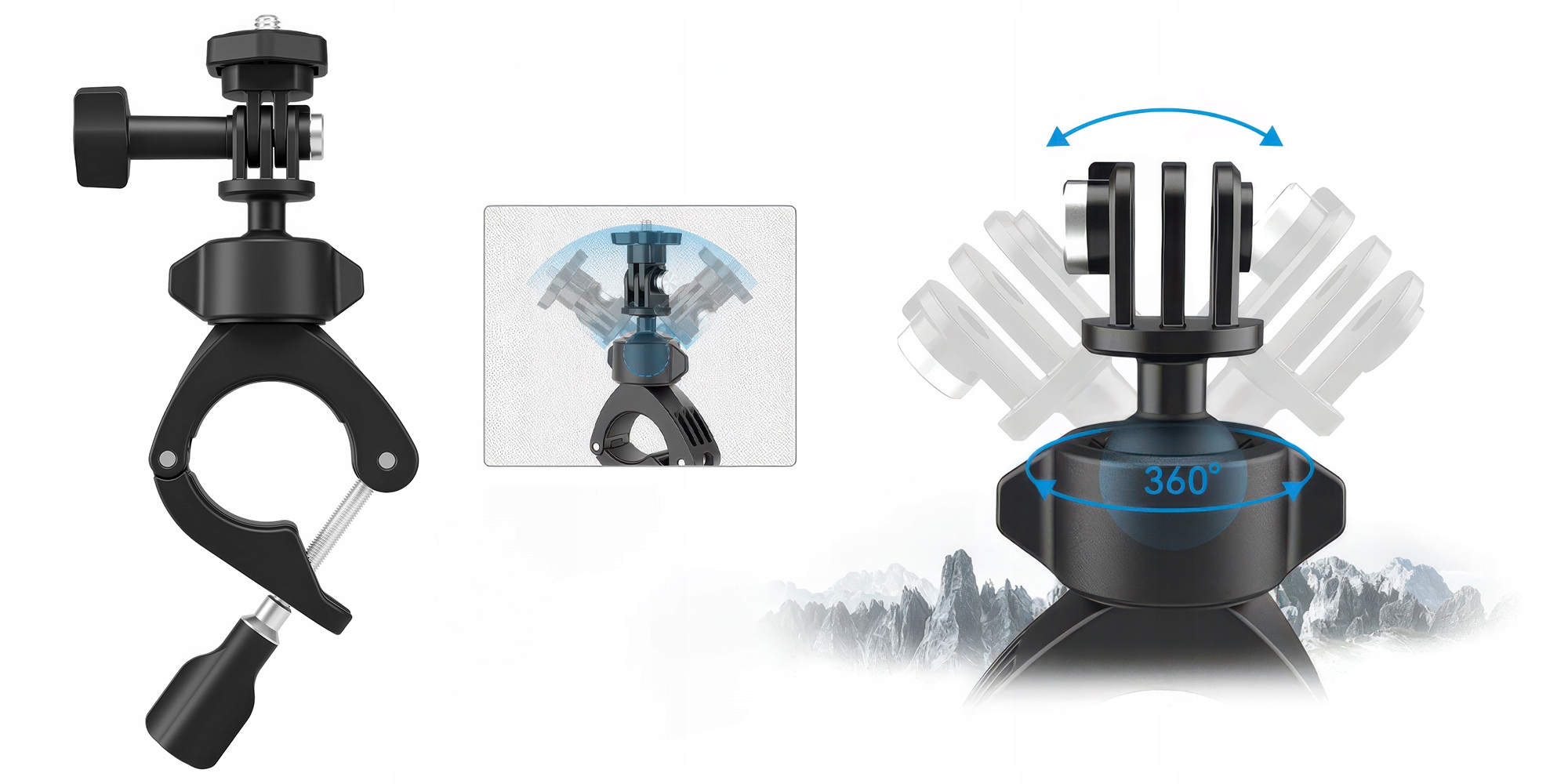 Встроенная шаровая головка с фиксирующей ручкой позволяет свободно вращать камеру в различных плоскостях и точно устанавливать кадр. Независимо от того, хотите ли вы снимать спереди, сбоку или с необычного ракурса – для точной подготовки кадра достаточно одного движения руки. Крепление на трубу Telesin TE-HBM-004 работает без инструментов, что обеспечивает быструю настройку и лучший контроль над записью.