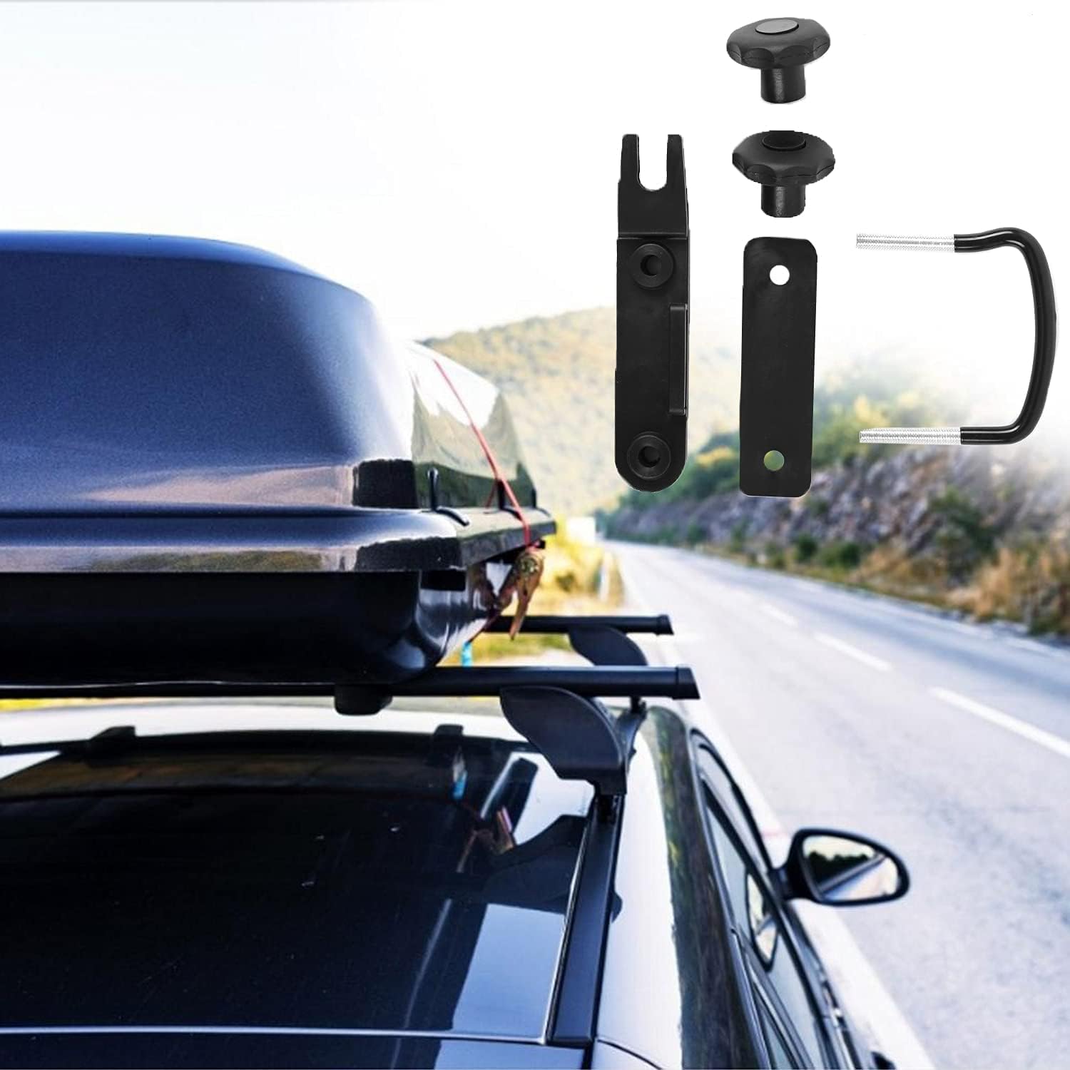 ▶️Закрепите бокс на крышу:Наши U-образные зажимы для бокса на крышу надежно удерживают бокс, предотвращая его падение и обеспечивая устойчивость во время езды. Резиновые уплотнения и пластиковые опорные пластины увеличивают трение и устойчивость, позволяя справляться с выбоинами, холмами, склонами и шоссе.