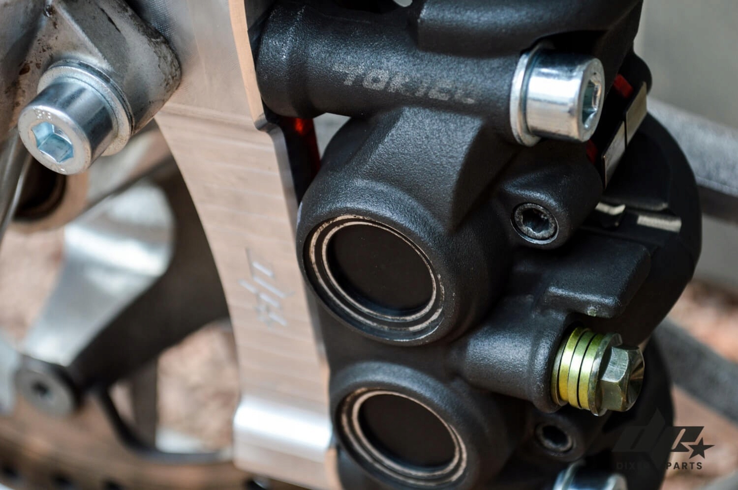 - 2 радиальных зажима (справа и слева) с расстоянием между болтами 108 мм (Tokico/Nissin)