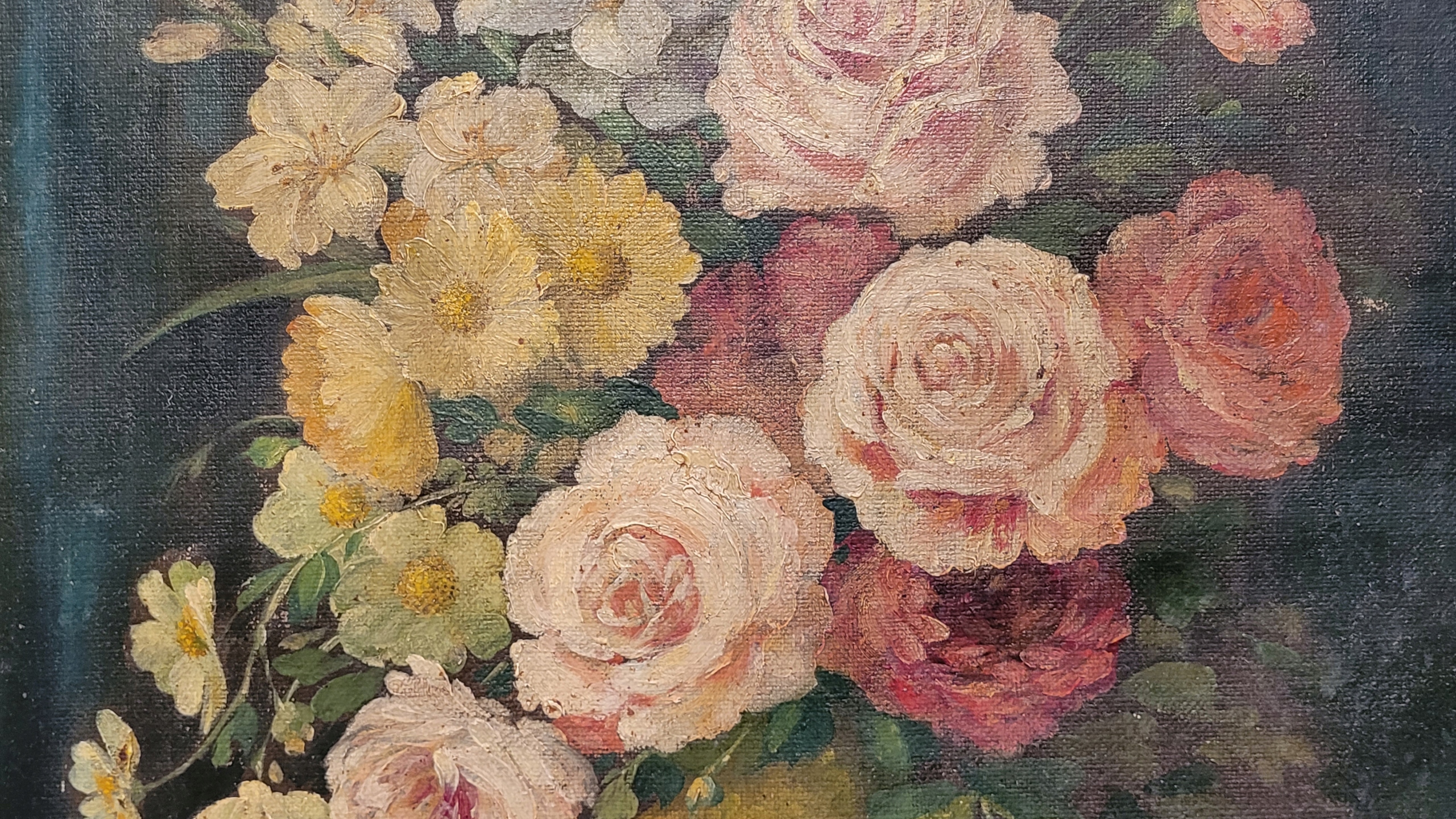 Предмет продажи - красивая, старинная картина маслом «РОЗЫ».