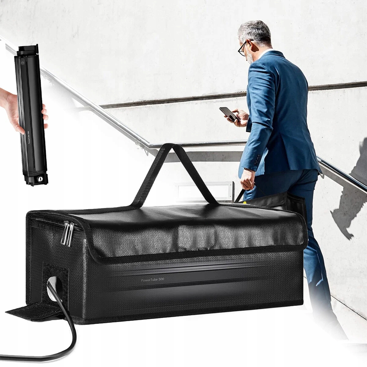 использует двойное закрытие, состоящее из липучки и молнии, чтобы обеспечить безопасное закрытие сумки во время зарядки. В случае пожара батареи эта сложная двойная система эффективно замедляет распространение газа и пламени.