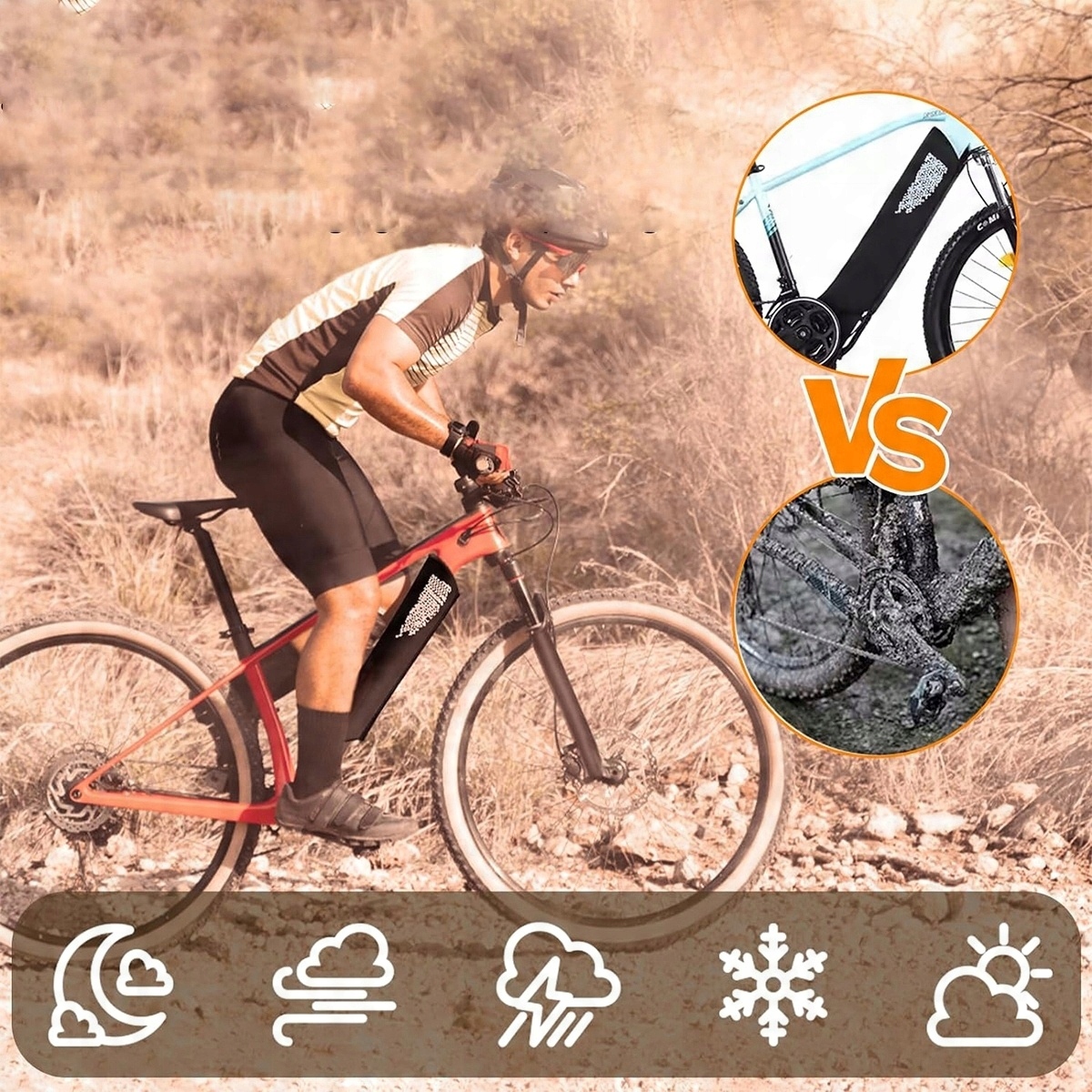 Защитная крышка аккумулятора электровелосипеда оснащена застежками-липучками, которые можно свободно регулировать, чтобы полностью соответствовать раме аккумулятора и обеспечивать всестороннюю защиту. Вам больше не придется беспокоиться о царапинах, сколах и грязи; Просто снимите крышку аккумуляторного отсека велосипеда и регулярно чистите ее. Примечание. Крышку аккумуляторной батареи электровелосипеда нельзя стирать в машине!