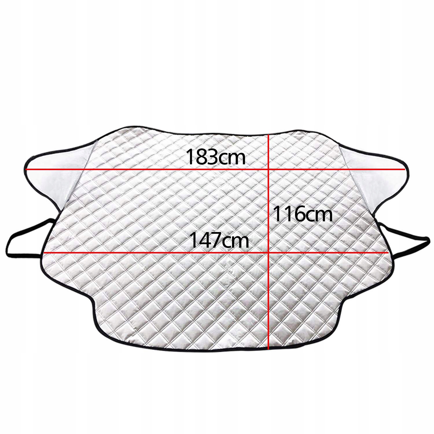 183 x 116 см, подходит для большинства автомобилей и внедорожников. Это лучше защищает переднее стекло автомобиля от мороза и снега. , долговечный и устойчивый к разрыву. Дно очень мягкое и нежное, поэтому он не повредит лобовое стекло автомобиля