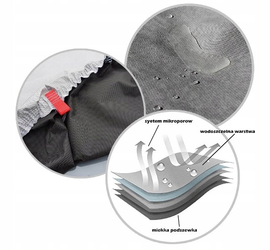 - The upper part of the cover made of 5 -layer material with the addition of polyester and with a separate lined liner ensures softness and flashiness during movement in the wind