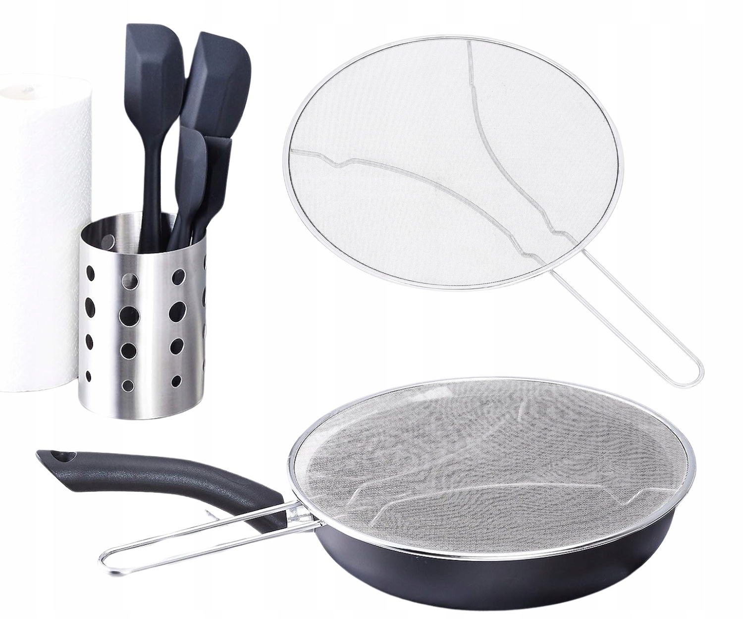 Брызговик изготовлен из высококачественной нержавеющей стали и имеет сверхтонкую сетку, котораяпредотвращает 99 % брызг. Чтобы горячее масло, жир, кипящая вода, остатки пищи не разбрызгивались и не ошпаривались.