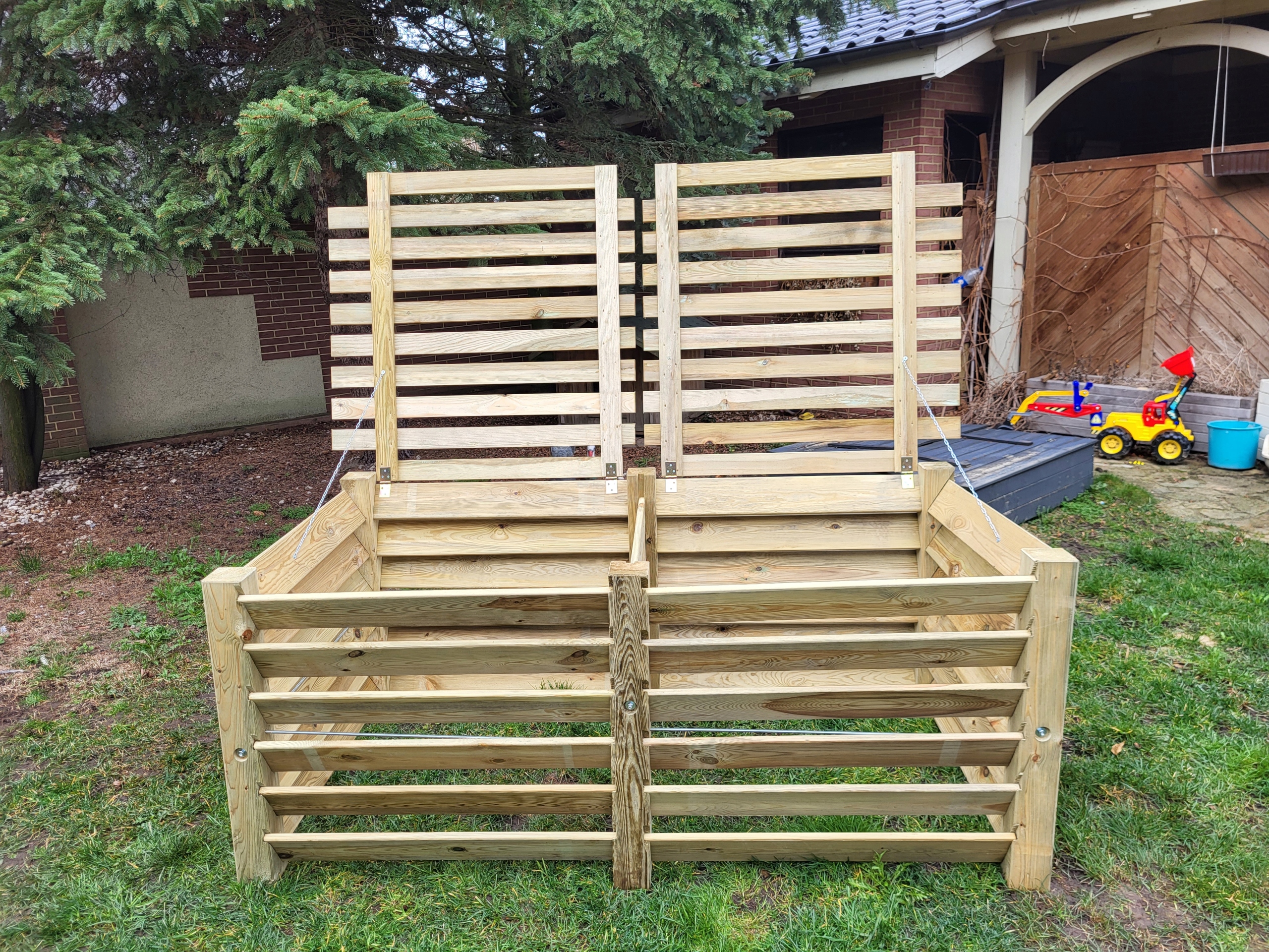 Так же, как и наши компостеры, крышка изготовлена из массива дерева и подходит для