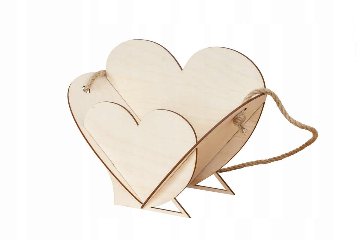 Крышка в форме сердца, оснащенная ручкой из толстой веревки. Корзину можно повесить или поставить на стол.
