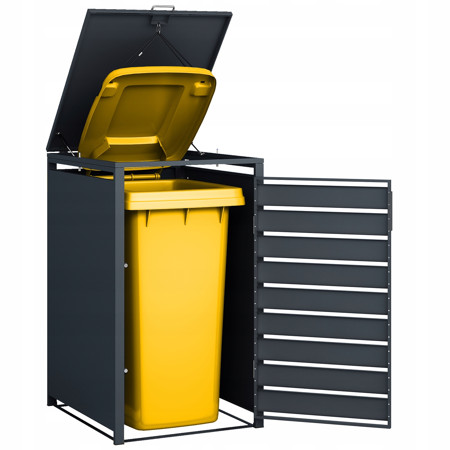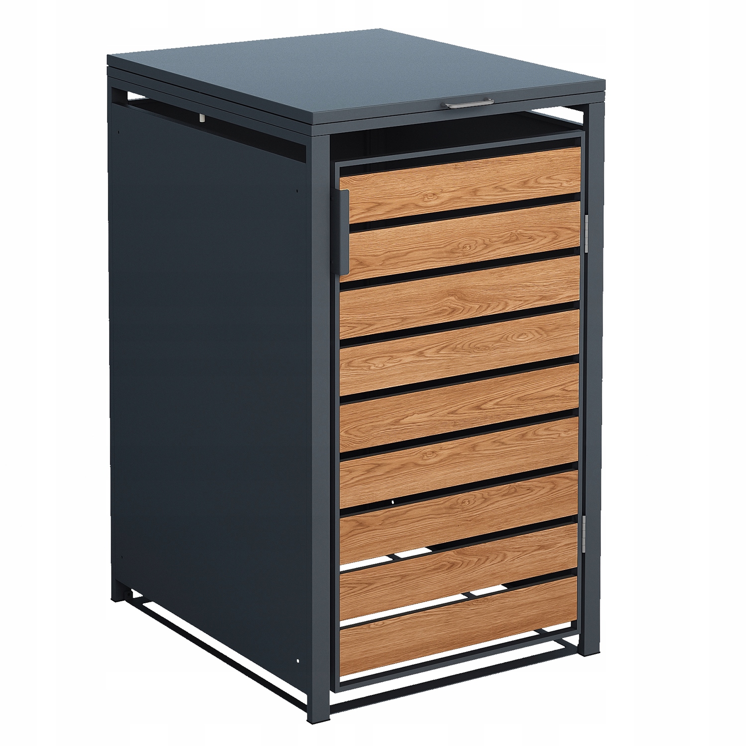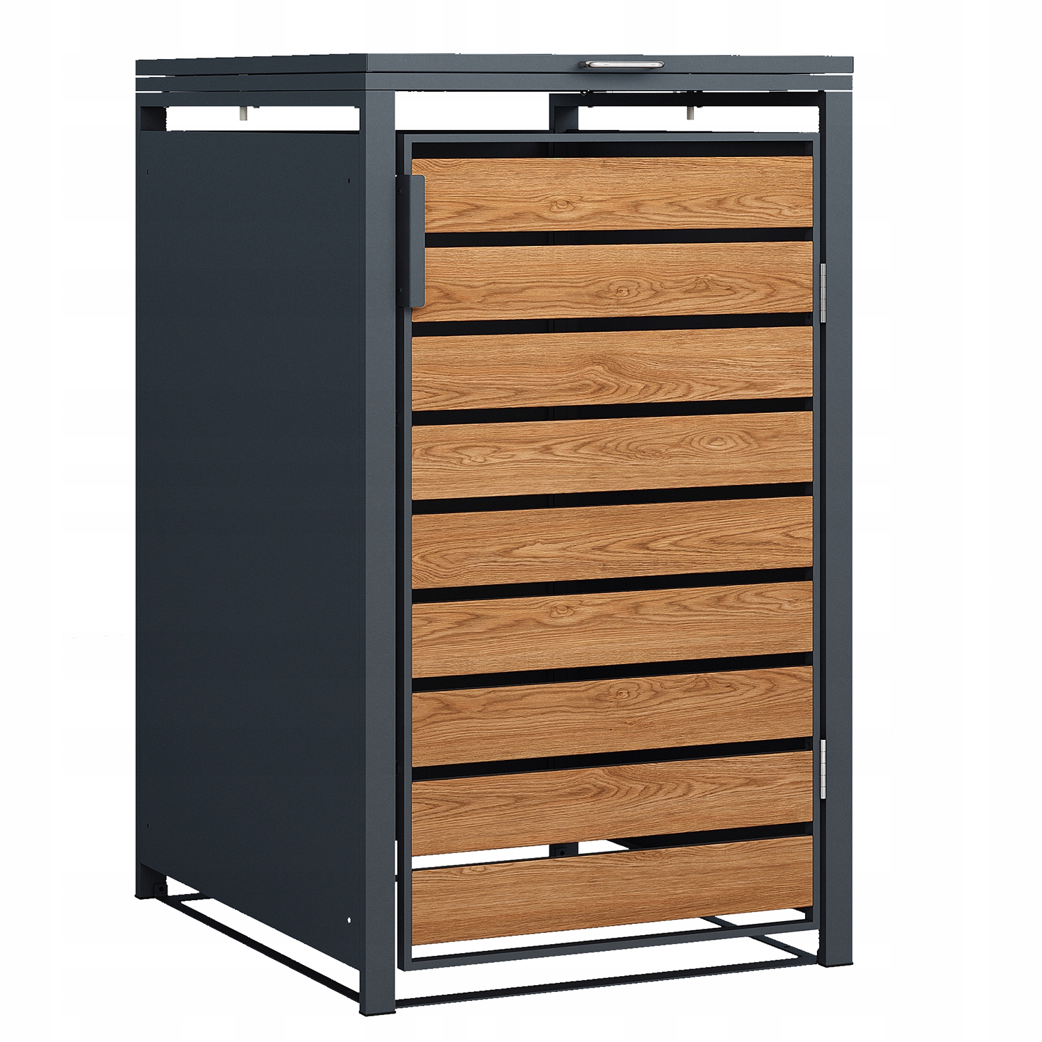Цвет: антрацит, трансфер дерева Технические данные: Крышка рассчитана на корзину объемом 1 240 литров. Рост: 116 см Ширина: 68 см Глубина: 80 см Двойные двери оборудованы ручками. Соединительные элементы, петли, затворы Конструкция имеет входную дверь с контейнером и подъемную створку с фиксатором высоты. Материалы устойчивы к изменяющимся погодным условиям, долговечны и не требуют ухода. Максимальные размеры мусорных контейнеров: ширина: 00, глубина: 00, высота: 00. Современный, эстетичный внешний вид застройки. Легкая, но прочная конструкция позволяет перемещать конструкцию двум людям. Конструкция имеет открывающуюся верхнюю крышку, обеспечивающую легкий доступ к контейнерам для мусора. К верхней створке прикреплена правильно подобранная газовая пружина, которая помогает открывать и останавливать ее под оптимальным углом. Для защиты конструкции при закрытии люка используются специальные амортизирующие бамперы.