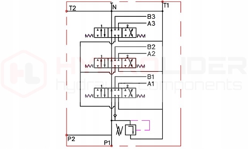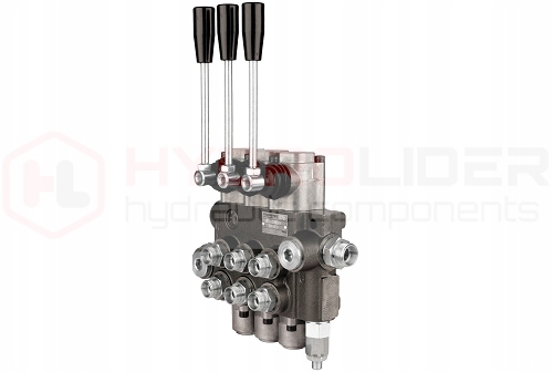 - 3-х секционный гидрораспределитель 40 л/мин с пружинным позиционированием.