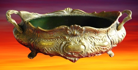 Предметом аукциона является жардиньер/крышка, видимая на фото. Он был импортирован из Германии и куплен в Тродельхалле для коллекционеров. Он изготовлен из латуни. Состояние как на фото - нормальные следы использования.