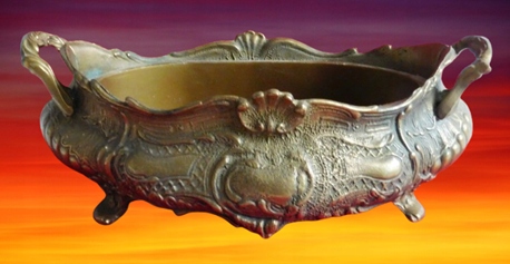 Предметом аукциона является жардиньер/крышка, видимая на фото. Он был импортирован из Германии и куплен в Тродельхалле для коллекционеров. Он изготовлен из латуни. Состояние как на фото - следы эксплуатации нормальные.