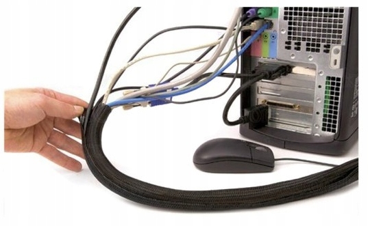 Чехол изготовлен из гибкого материала и растягивается благодаря плетеной структуре. по бокам у него липучки, поэтому не придется тянуть кабели по всей длине, просто вставьте кабели внутрь и приклейте липучку.