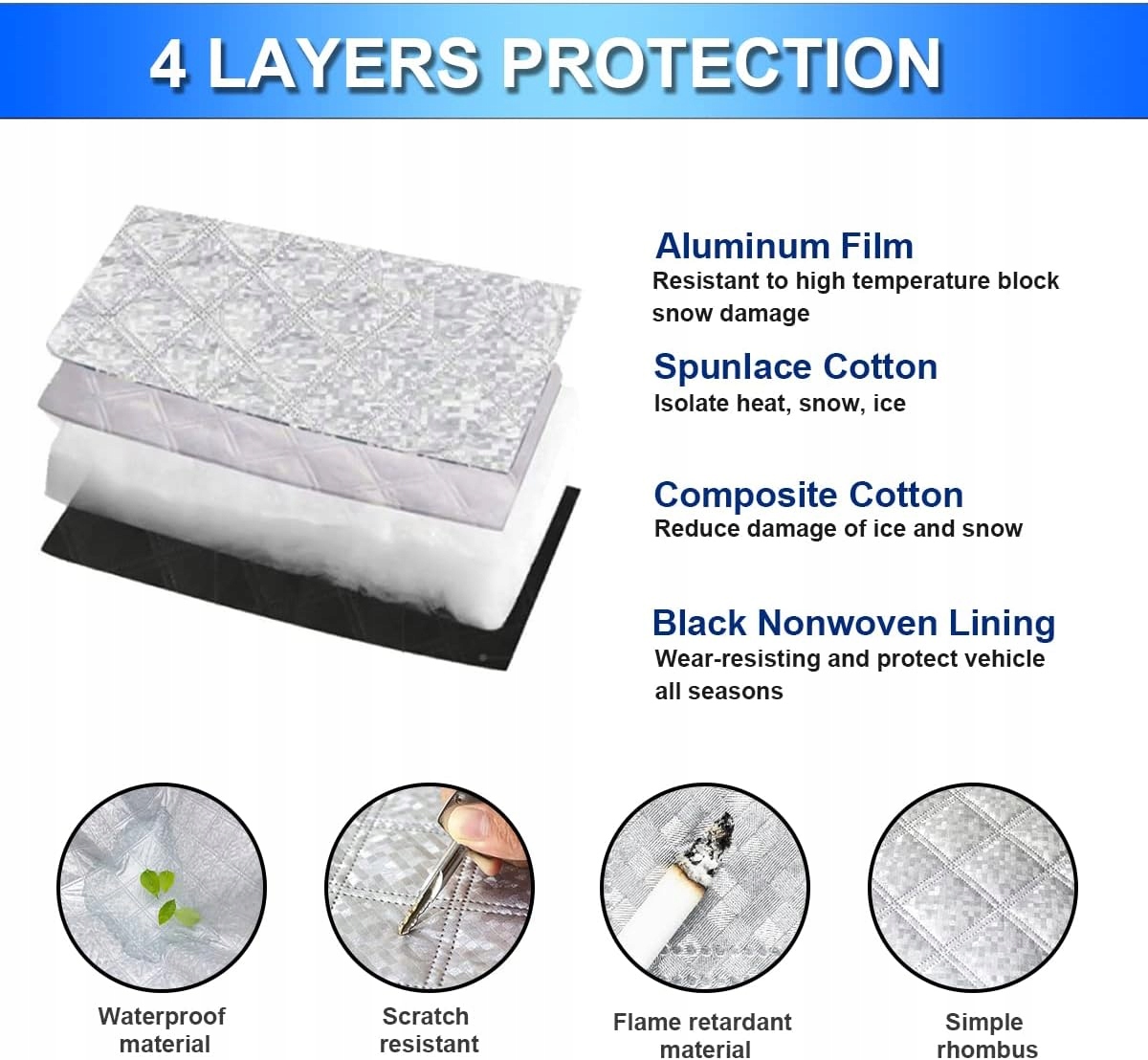 ✅ 4 слои материала - алюминиевое покрытие, хлопковой слой, не -скользящая ткань и нижняя ткань