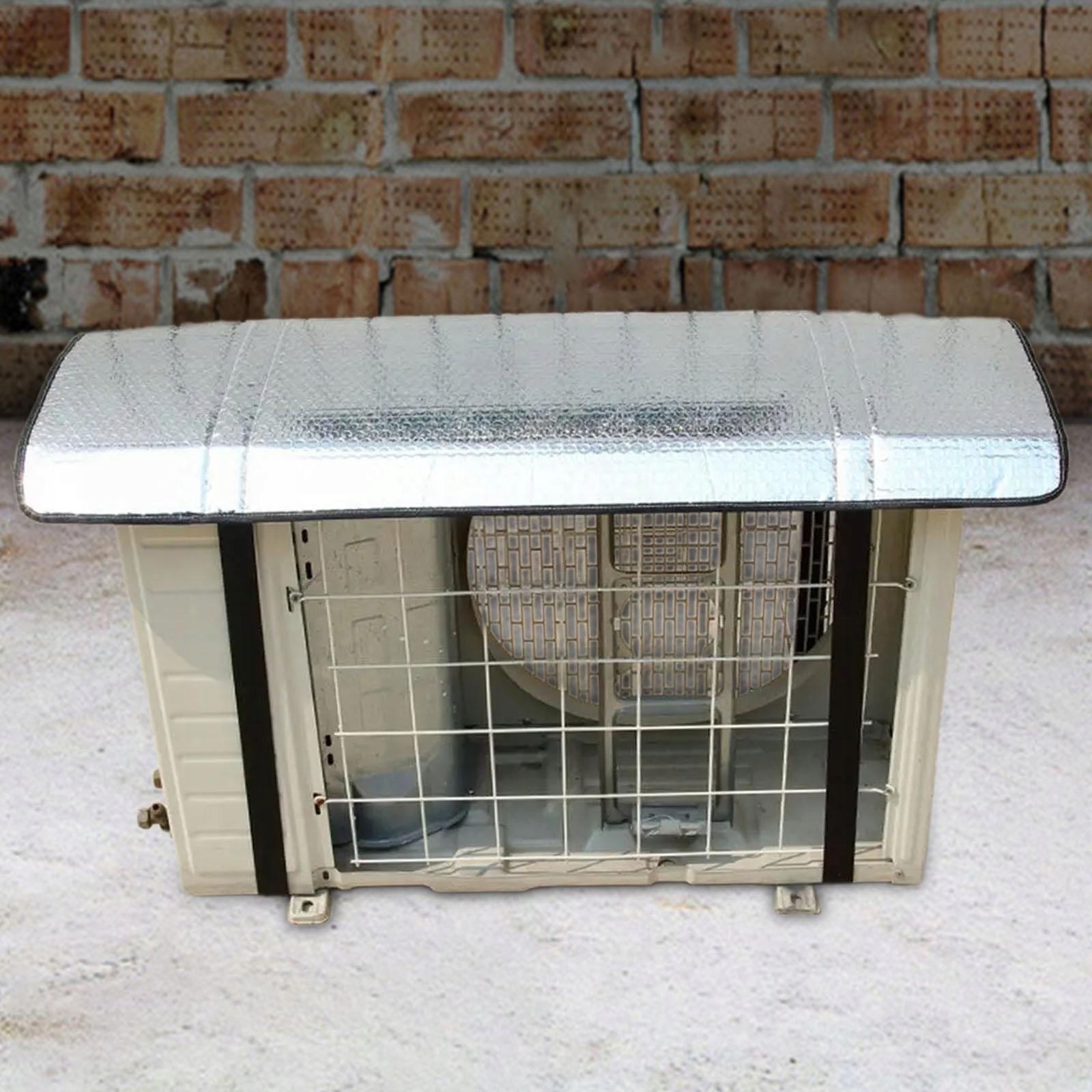 [Легко чистить]: солнцезащитную крышку кондиционера легко чистить, просто протрите ее тканью. там сухо и чисто. Его отражающие свойства помогают избежать постоянного воздействия тепла.