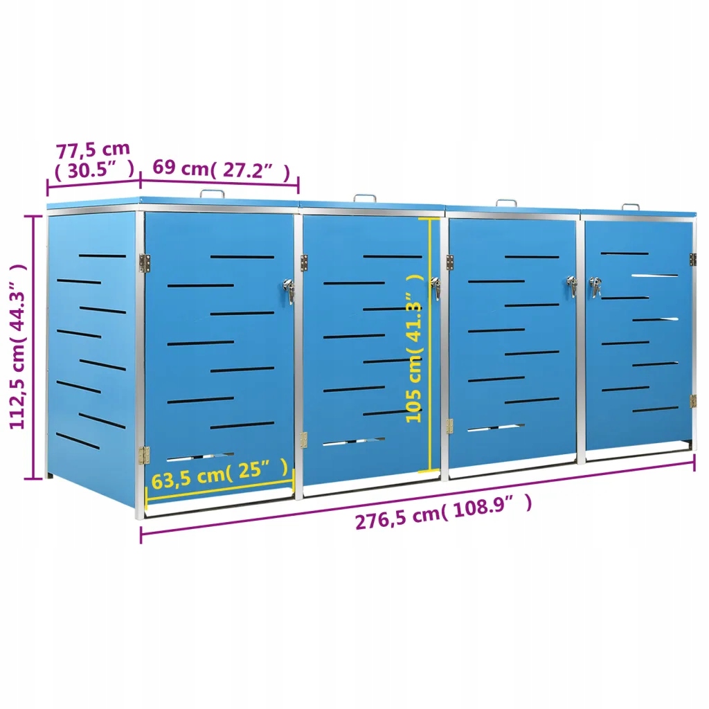 Крышка для мусорного бака изготовлена из оцинкованной панели. Каркас из стали и нержавеющей стали, что делает его чрезвычайно прочным и устойчивым к ржавчине. Полая конструкция обеспечивает циркуляцию воздуха и предотвращает появление неприятных запахов, а система закрытия обеспечивает безопасное хранение мусора. Кроме того, удобная крышка и пружины облегчают установку и извлечение мусорного контейнера.