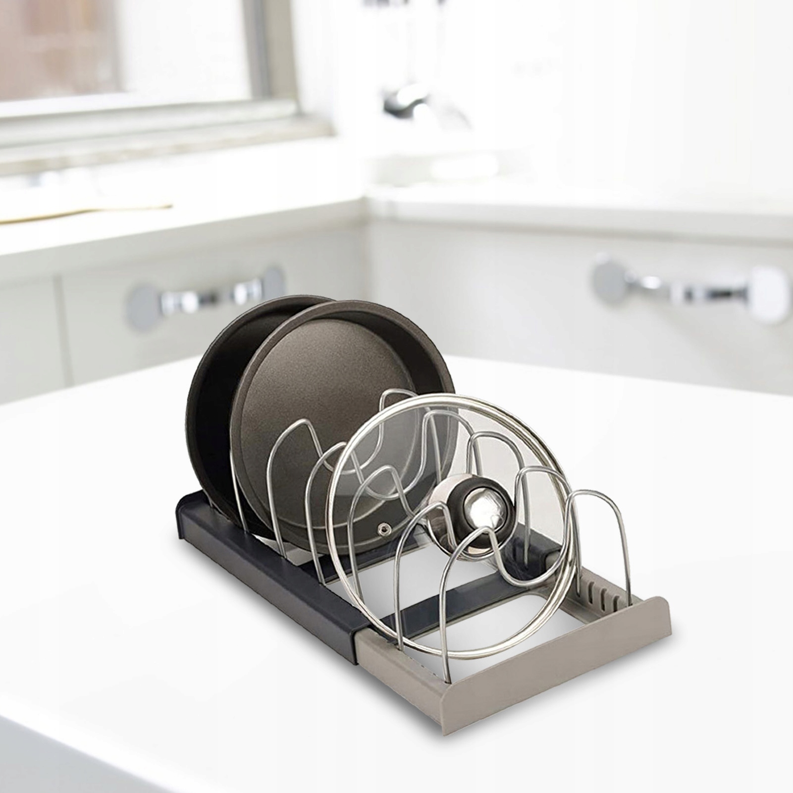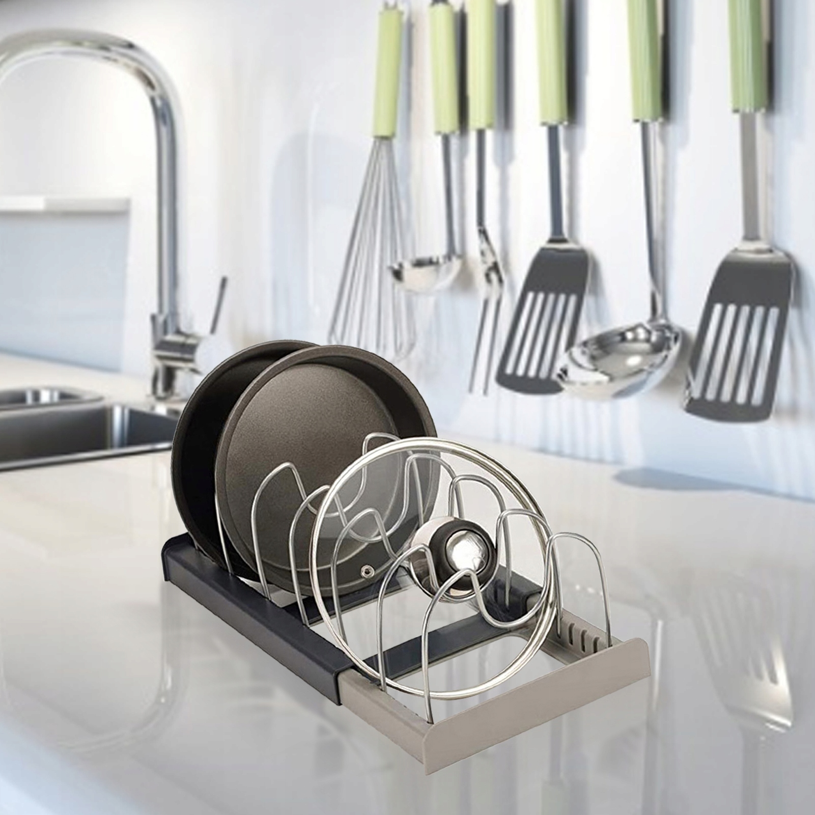 🚩 Органайзер позволит вам организовать различные кухонные принадлежности, такие как: крышки кастрюль, сковороды, кастрюли, разделочные доски, противни и т. д.