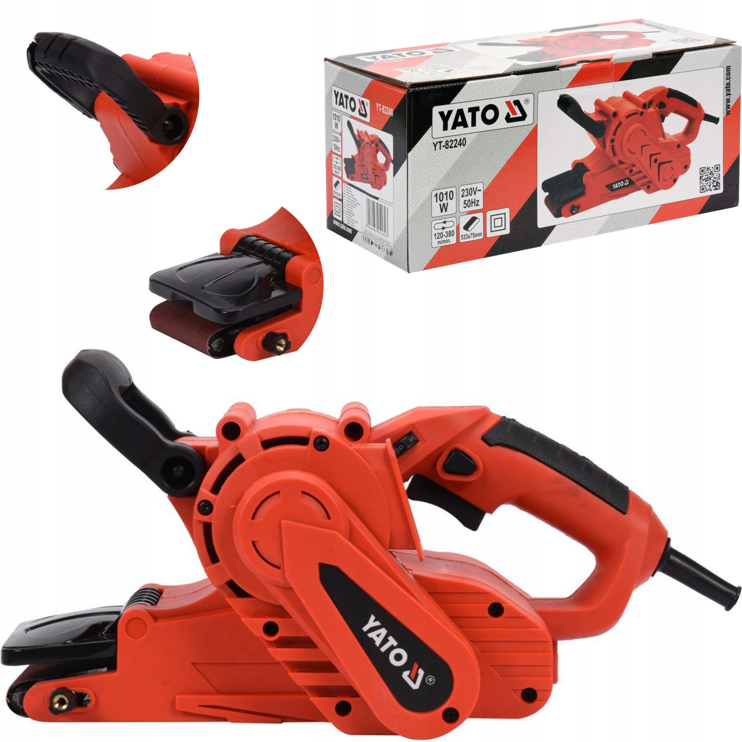 ЛЕНТОЧНО-ШЛИФОВАЛЬНАЯ МАШИНА 1010 Вт, 75 ММ Х 533 ММ, С НАКЛОННОЙ КРЫШКОЙ И РЕГУЛИРОВКОЙ СКОРОСТИ ЛЕНТЫ