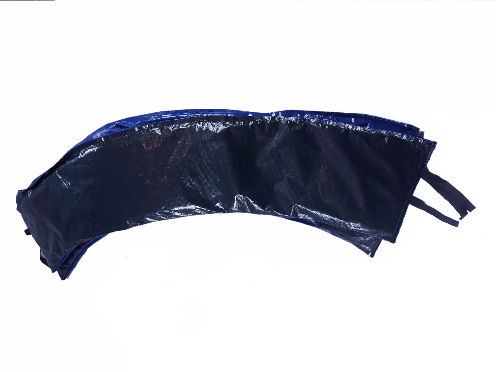 Новая глава в производстве чехлов для батутов: Поливинилхлорид – термопластичные свойства, высокие механическая прочность и устойчивость ко многим растворителям. Чехлы из этого материала можно мыть химическими средствами. Им также не повредит едкий птичий помет, ослабляющий полиэтиленовые покрытия. Чехол устойчив к сложным погодным условиям и солнечному излучению, не трескается. Он эстетичен и хорошо закрывает пружины и другие металлические элементы. Он перекрывает коврик примерно на 5 см. При такой ширине ножка ребенка не будет проваливаться между пружинами. Он мягкий и прекрасно ложится на раму батута. Ширина: 26-27 см и дополнительные 10 см, которые опускаются для покрытия труб каркаса снаружи. Толщина поролона, вшитого в чехол: 12 мм - он жёсткий и не разлетается. Крепится к раме резиновой стяжкой - свободно.