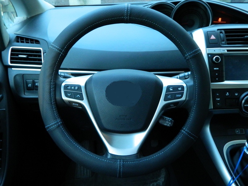 - Сама кожа пришита на резиновой основе, что предотвращает скольжение чехла по рулю. любым способом.
