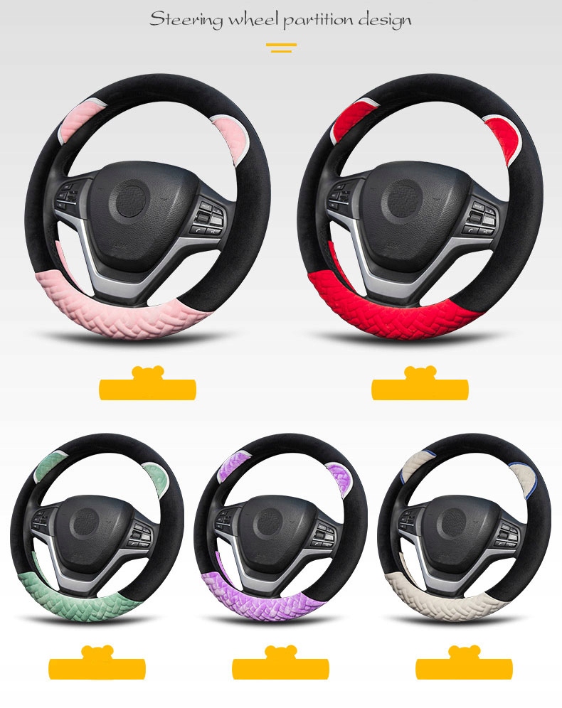 Из мягкого материала, короткого плюша, приятного и приятного на ощупь. Усилен резиной снизу, что придало чехлу жесткость и позволило плотно прилегать к рулю.
