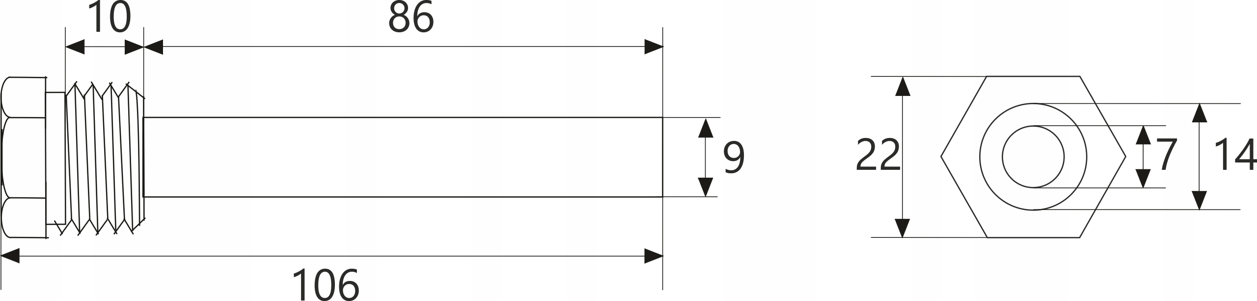 - Длина с резьбой: 106 мм