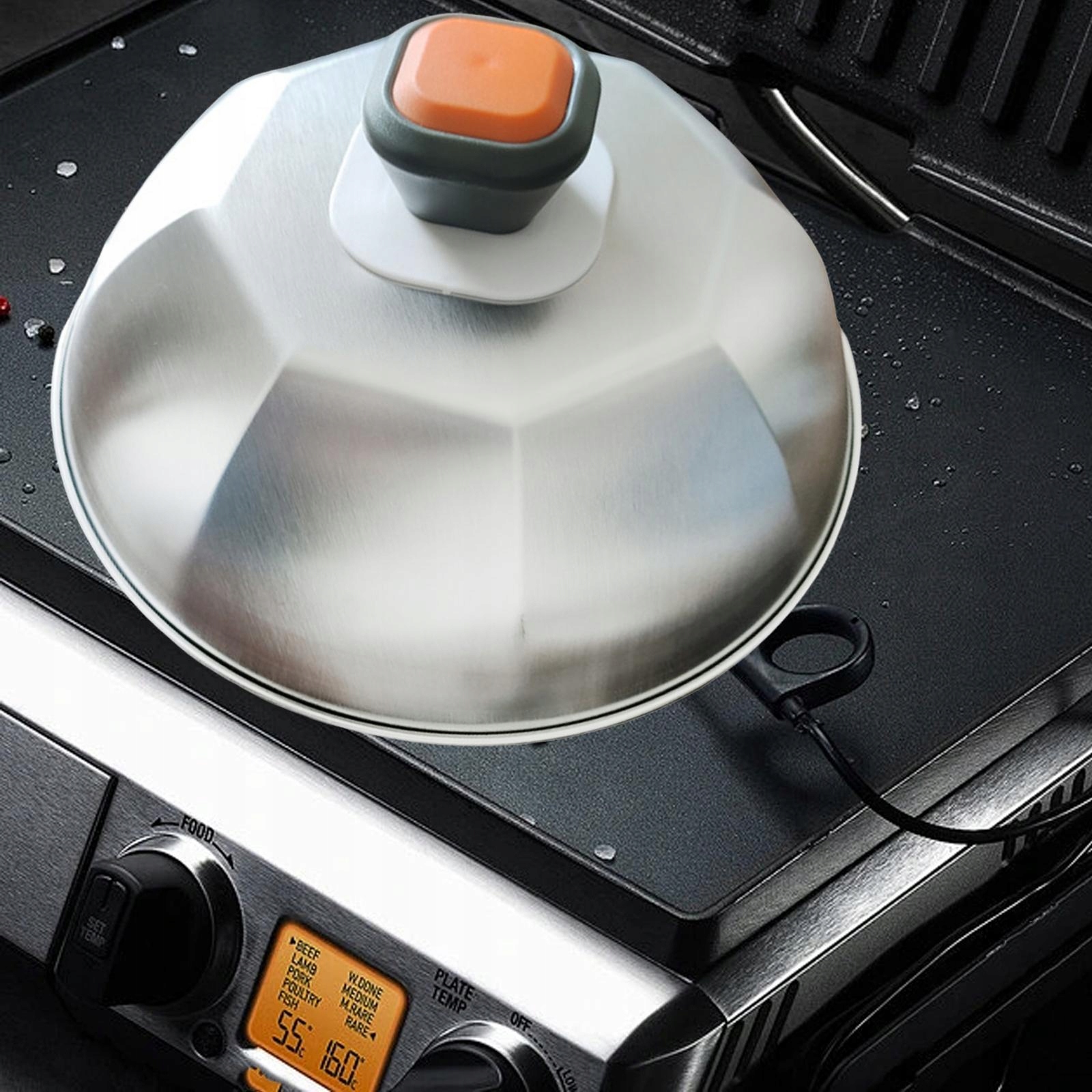 [Эргономическая конструкция]: теплостойкость была разработана с комфортом и безопасностью, обеспечивающей определенную поучительную конструкцию. К этой крышке купола, которая помогает сосредоточить тепло для даже приготовления пищи. Он быстро высыхает сыр и испаряет овощи, укрепляя вкус блюд