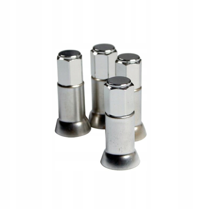 Колпачки изготовлены из алюминия, втулки - из латуни. Колпачки защищают от попадания в клапан пыли, грязи и других примесей. Рукава являются декоративным элементом. Внутри гайки имеют резиновые уплотнители, которые не позволяют воздуху «уходить» через клапаны. Предлагаемые колпачки и рукава серебристого цвета.