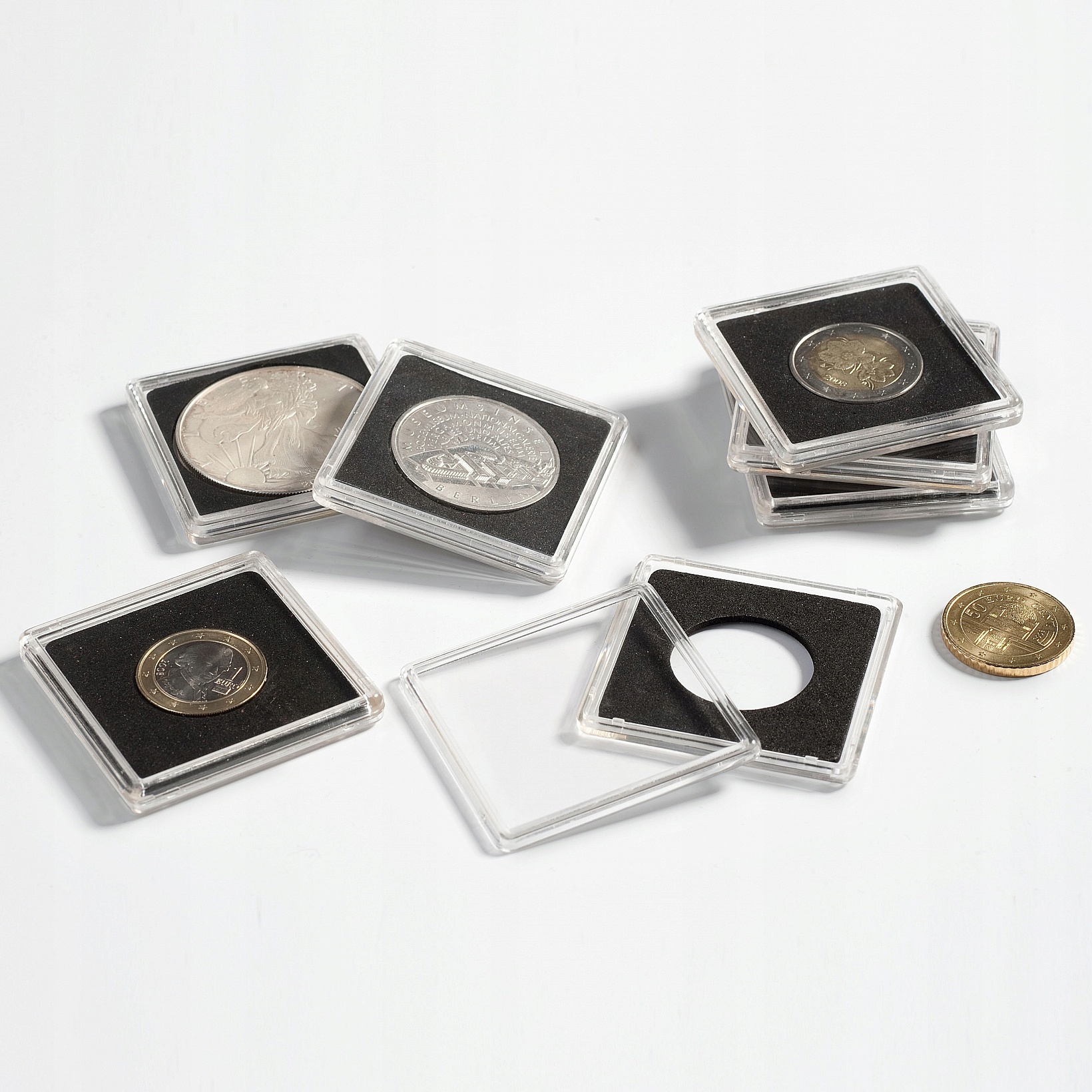 Идентичные внешние размеры квадратных колпачков позволяют хранить монеты разных размеров в одной системе сбора. . Колпачки имеют точно подогнанную черную вставку из гибкой пены ЭВА с нейтральным pH, для всех наиболее популярных монет диаметром 10 - 41 мм, упакованных по 10 штук в упаковке. p>