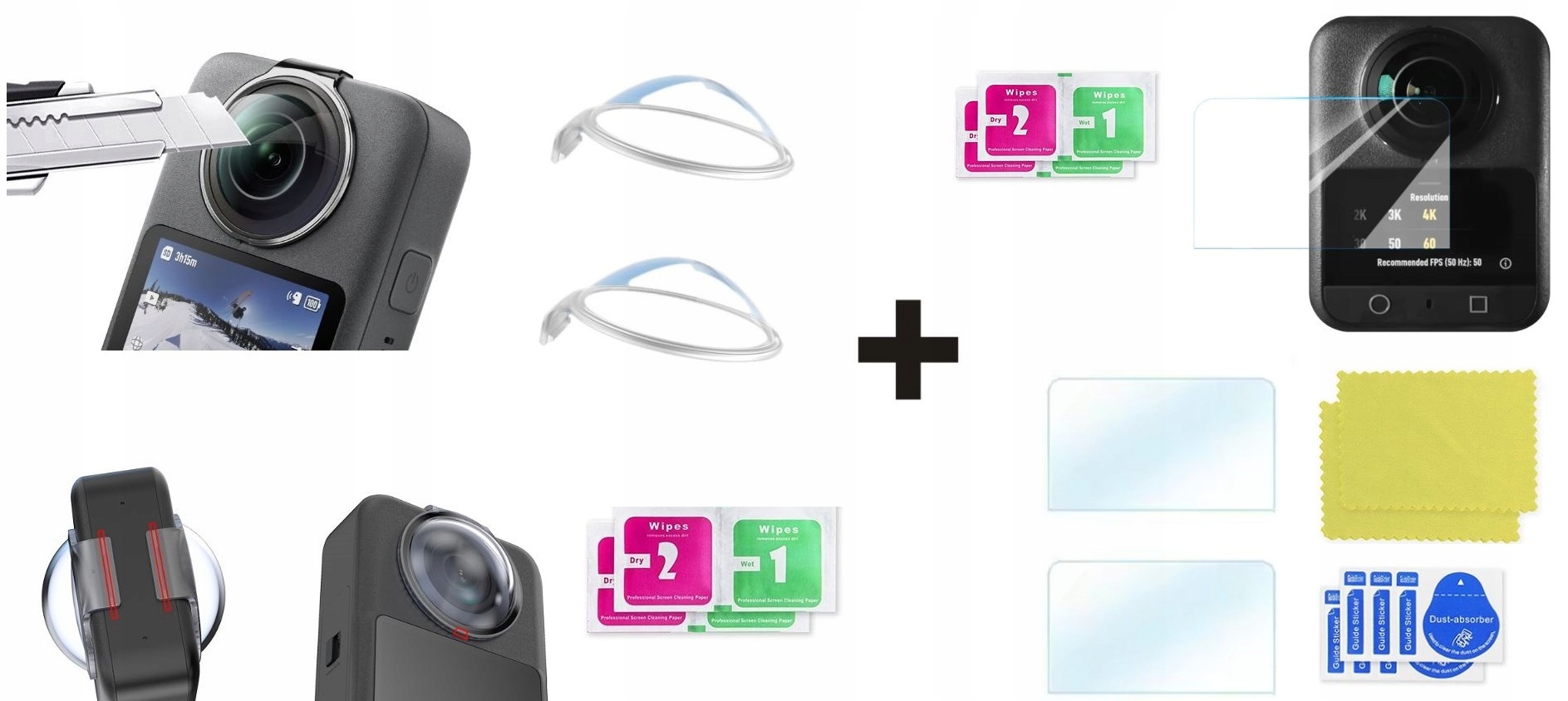 Крышки для линз DJI Osmo 360 Premium + закаленное стекло для дисплея x 2! – Максимальная защита без компромиссов