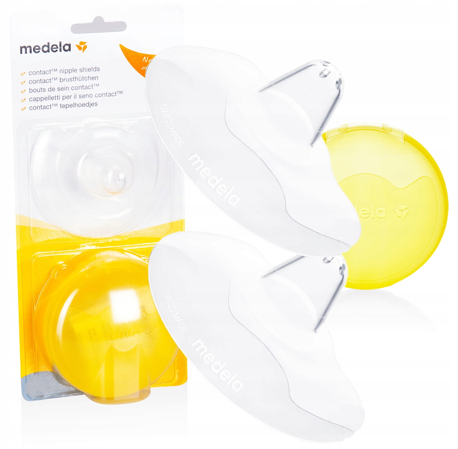 Medela - Накладки на соски Medela Contact™ представляют собой контактные накладки, которые защищают соски во время кормления и помогают ребенку захватывать соски. грудь. Насадки прочные, удобные и удобные, они значительно облегчают кормление ребенка, несмотря на боль, плоские или втянутые соски. Они также полезны в случае слишком сильной утечки молока. Они облегчают ребенку правильное захватывание груди, а их большая и надежная поверхность захвата устраняет трудности с захватом соска ребенком. Благодаря специально разработанной форме они обеспечивают обширный контакт с кожей и максимально возможный контакт с ребенком, нос которого непосредственно соприкасается с материнской грудью. Они ультратонкие, что важно для поддержания лактации на должном уровне. После смачивания водой чехол практически прилегает к груди и главное не спадает. Накладки полностью изготовлены из материала, не содержащего BPA. Безвкусный и без запаха. Доступно в трех размерах.