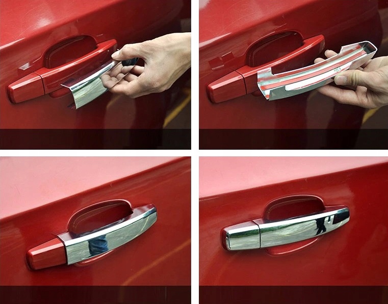 ⭐Декоративные хромированные накладки на ручки дверей – дополнение, дополняющее стиль автомобиля нотками спортивной элегантности. Идеально гармонируя с линиями автомобиля, они меняют облик дверных ручек, делая их настоящим украшением автомобиля. Изделие изготовлено из высококачественного АБС-пластика, хром.