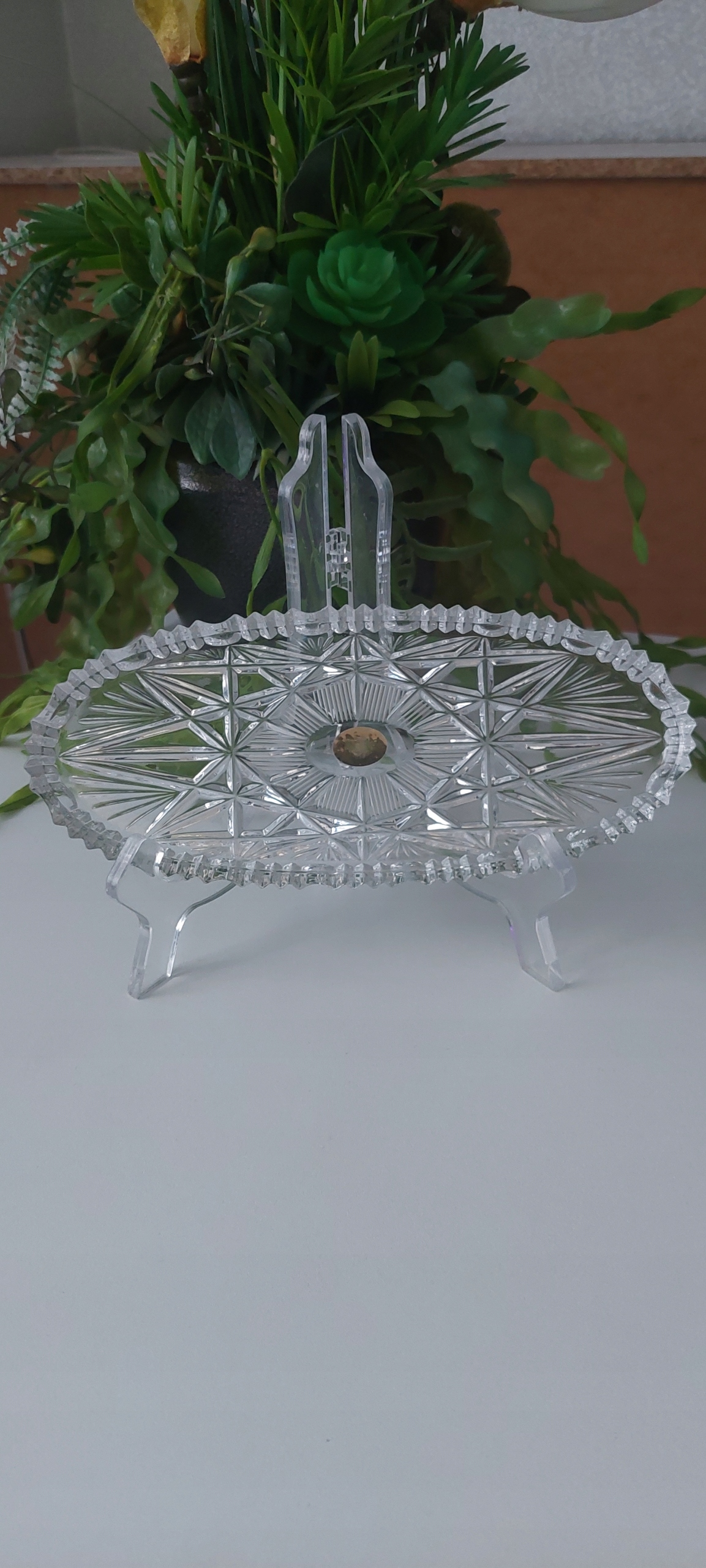 Хрустальная подставка для торта в очень хорошем состоянии, длина 21 см, ширина 9 см.