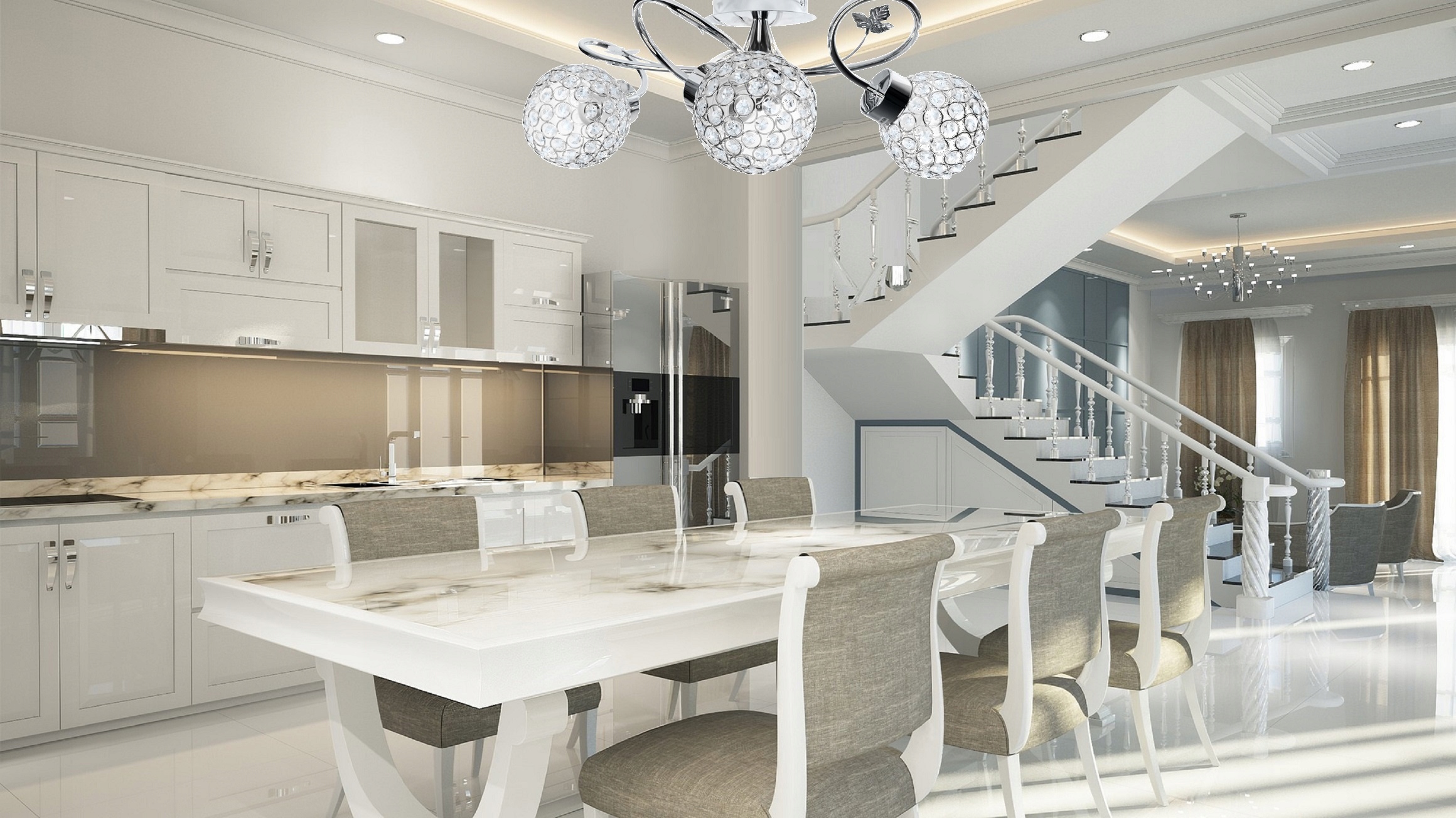 Сочетание хрома и кристаллов сделает ваш интерьер чрезвычайно свежим и сияющим, ведь кристаллы прекрасно пропускают свет и отражают его в разных направлениях.