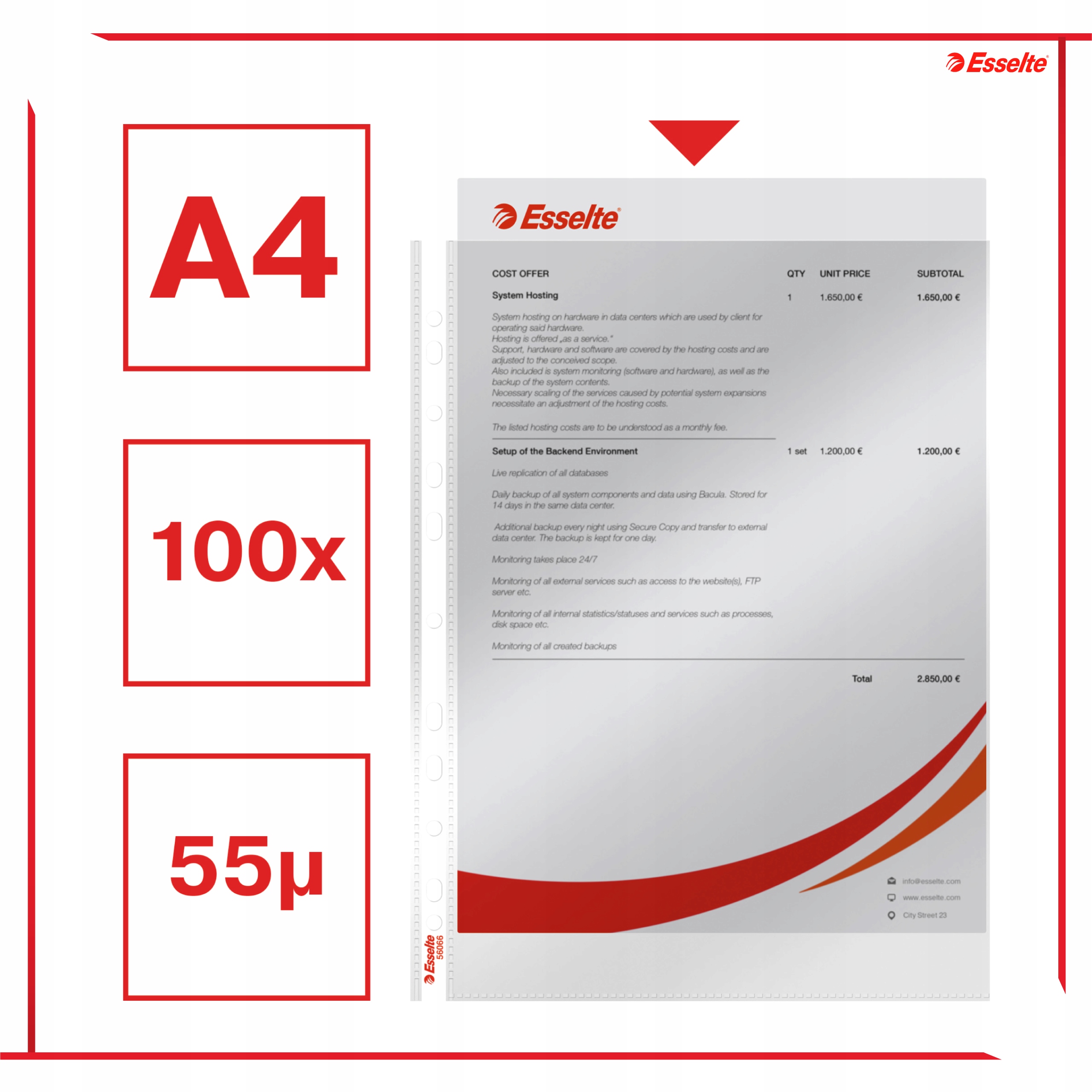 Футболки Esselte для хранения и систематизации документов пригодятся не только в офисе b>, но и дома. Они характеризуются высокой прочностью и экологичны, поскольку на 100% пригодны для вторичной переработки (полипропиленовая пленка толщиной 0,055 мм). Они эффективно защищают бумагу от грязи, разрывов, смятия и влаги. Что не менее важно, они выглядят очень элегантно.