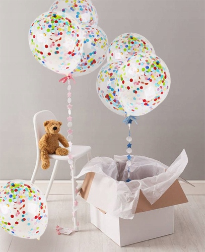 Фантастические латексные шары, наполненные разноцветными конфетти, станут отличным украшением важных событий и вечеринок.