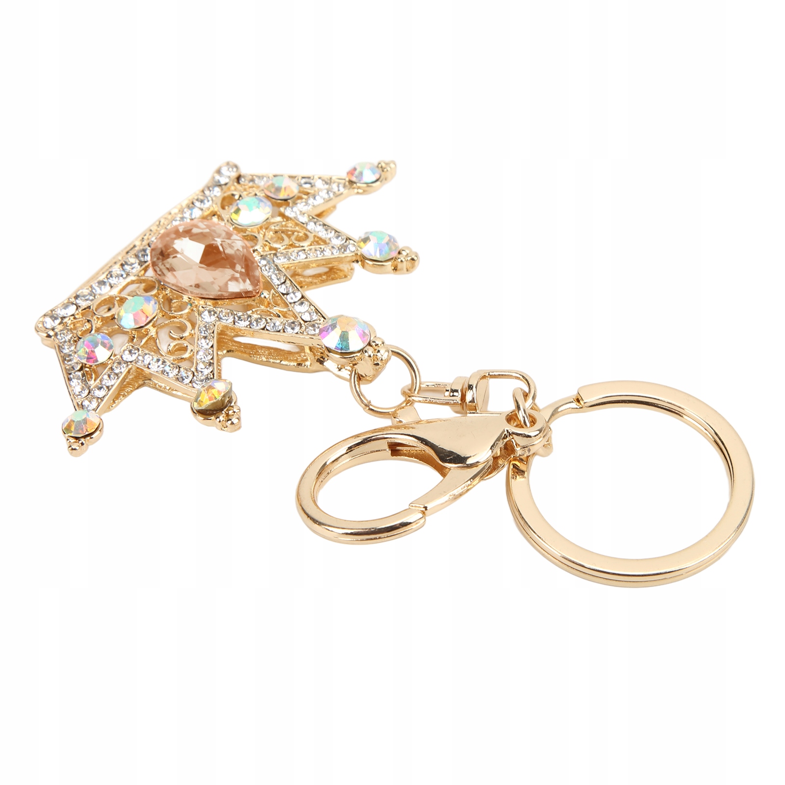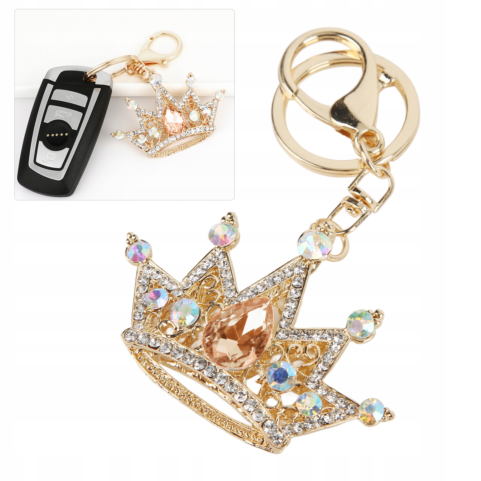 2. Форма короны: брелок со стразами имеет красивый узор и уникальную форму короны, яркую и сверкающую.