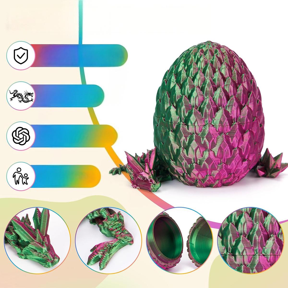 Хрустальное яйцо дракона с движущимся 3D-печатным драконом — идеальный подарок на такие случаи, как Рождество, Хэллоуин, Пасха или дни рождения. Он привлекателен и как игрушка, и как декоративный элемент для любителей и коллекционеров драконов.