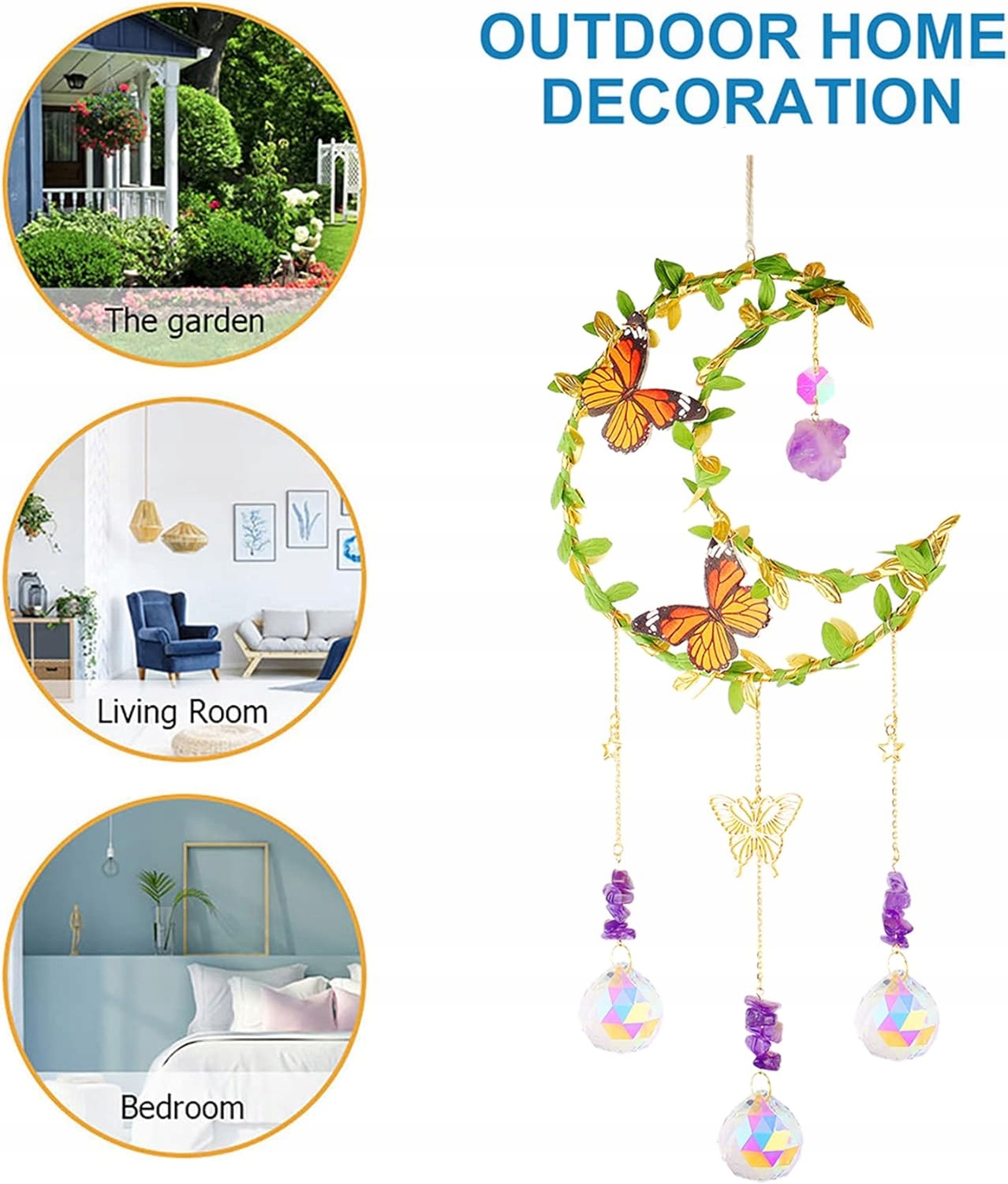 - 【Специальные материалы】 Металлическая цепь заменяется белой струной, которая сильнее и больше похожа на природу. Pozłacana rama księycowa jest owinięta Zielonym I Złotym Plastikowym Ratanem Motylkowym Z Wodoodpornego Materiału Pte. wszystko zarówno wewnątrz, jak i na na zewnątrz, powiesić na oknach, imprezach, żyrandolach, podwórkach, samochodach, roślinach, ogrodach, ścianach, балконы и т. Д.