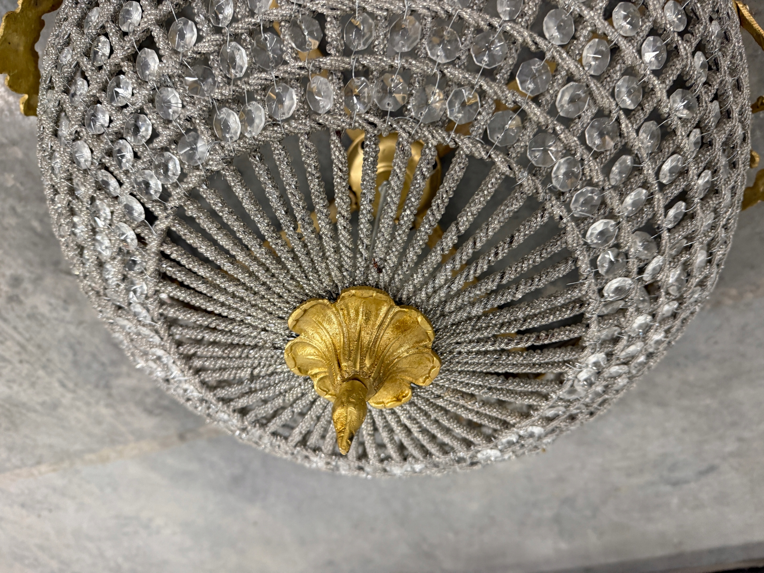 Хрустальный потолочный светильник с латунью, диаметр 50 см.