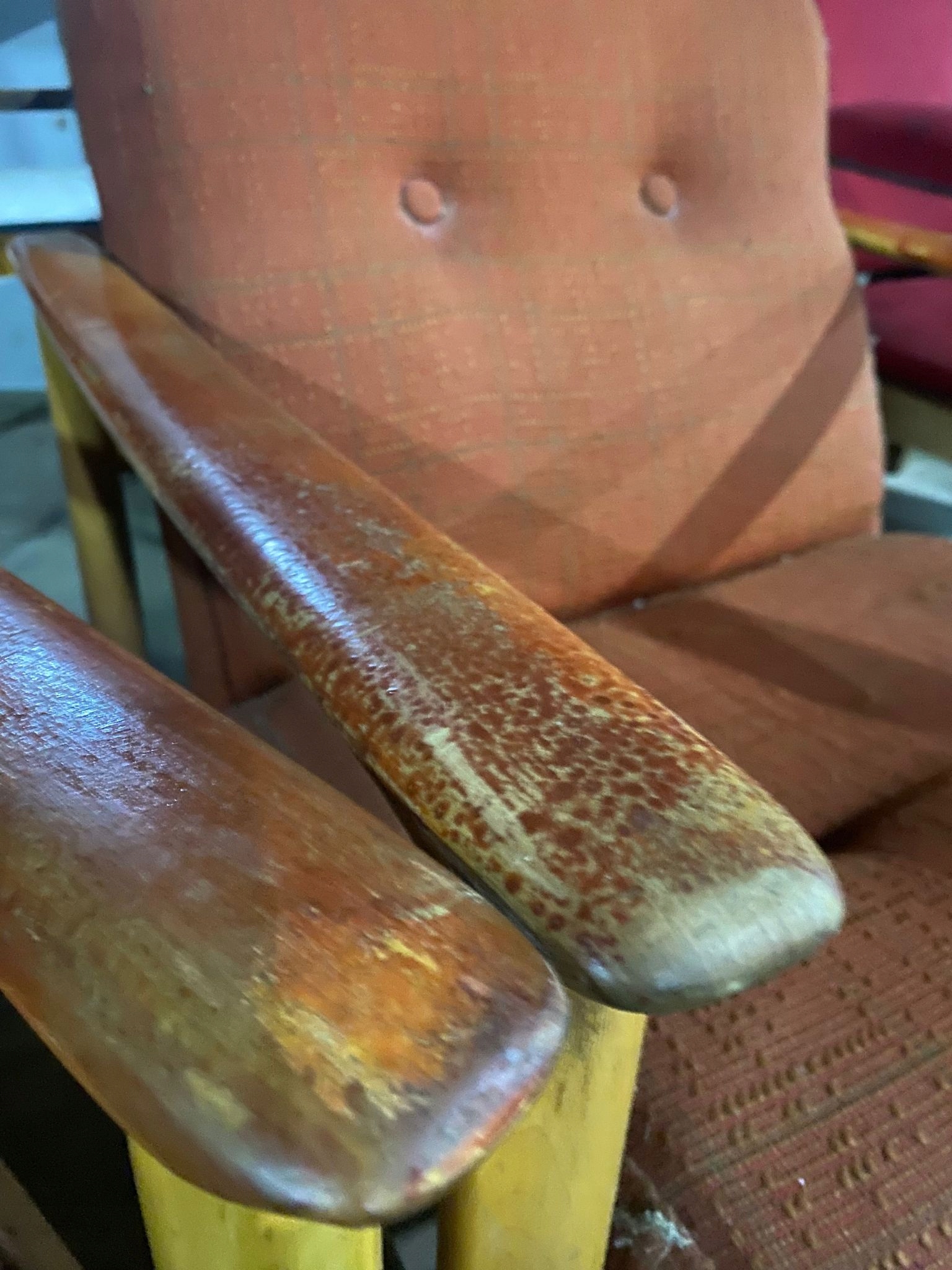 Продаются два кресла дизайна Польской Народной Республики 1960-х и 1970-х годов. Они требуют ремонта. Как видно на фотографиях, подлокотники потерты и потрескались. Деревянные элементы могут иметь сколы, царапины или потертости. Обивка тоже грязная и потертая. В некоторых местах есть слезы. Кресла как лисы :)